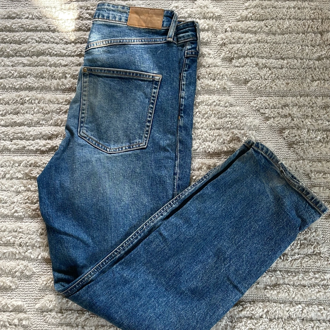Säljer dessa feta och billiga hm jeans! Dom är slim fit och modellen på bilden är 174. Skicket är 9/10 förutom att dom börjar gå sönder där nere på dom.