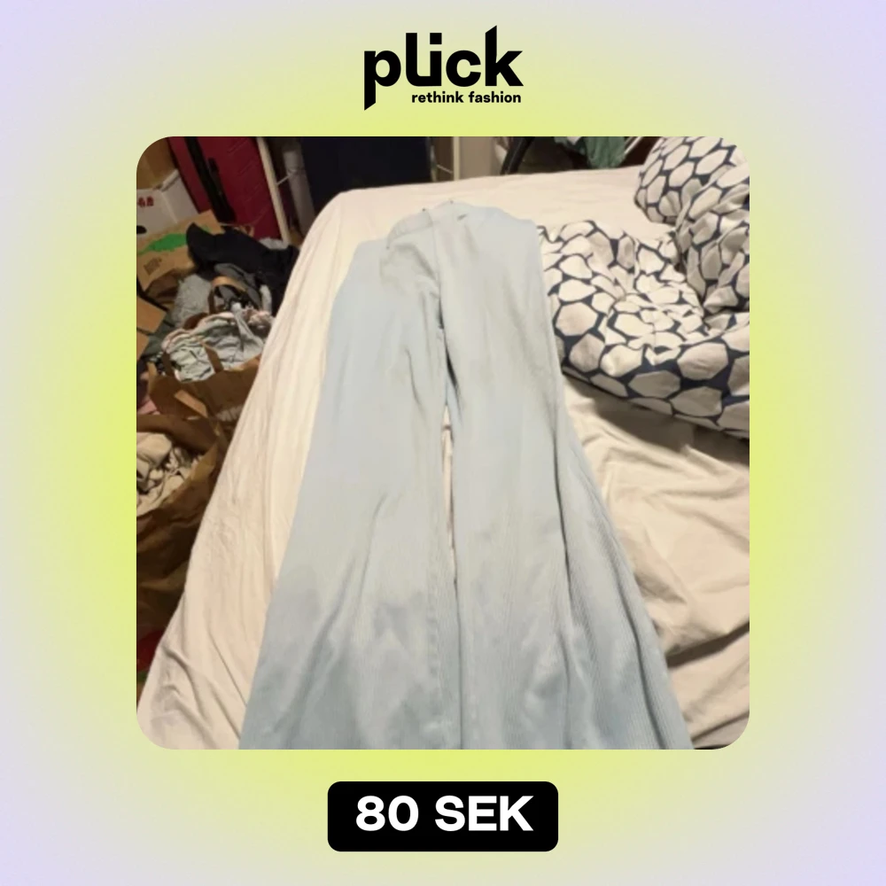 Baby blue utsvängda byxor Strl L Använd i fint skick Finns i Visby
