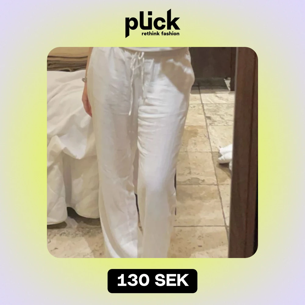 Säljer ett par vita linnebyxor i mycket bra skick. De har en avslappnad passform med snörning i midjan för en bekväm känsla. Perfekta för sommardagar eller en avslappnad stil. Passar till både vardag och semester!