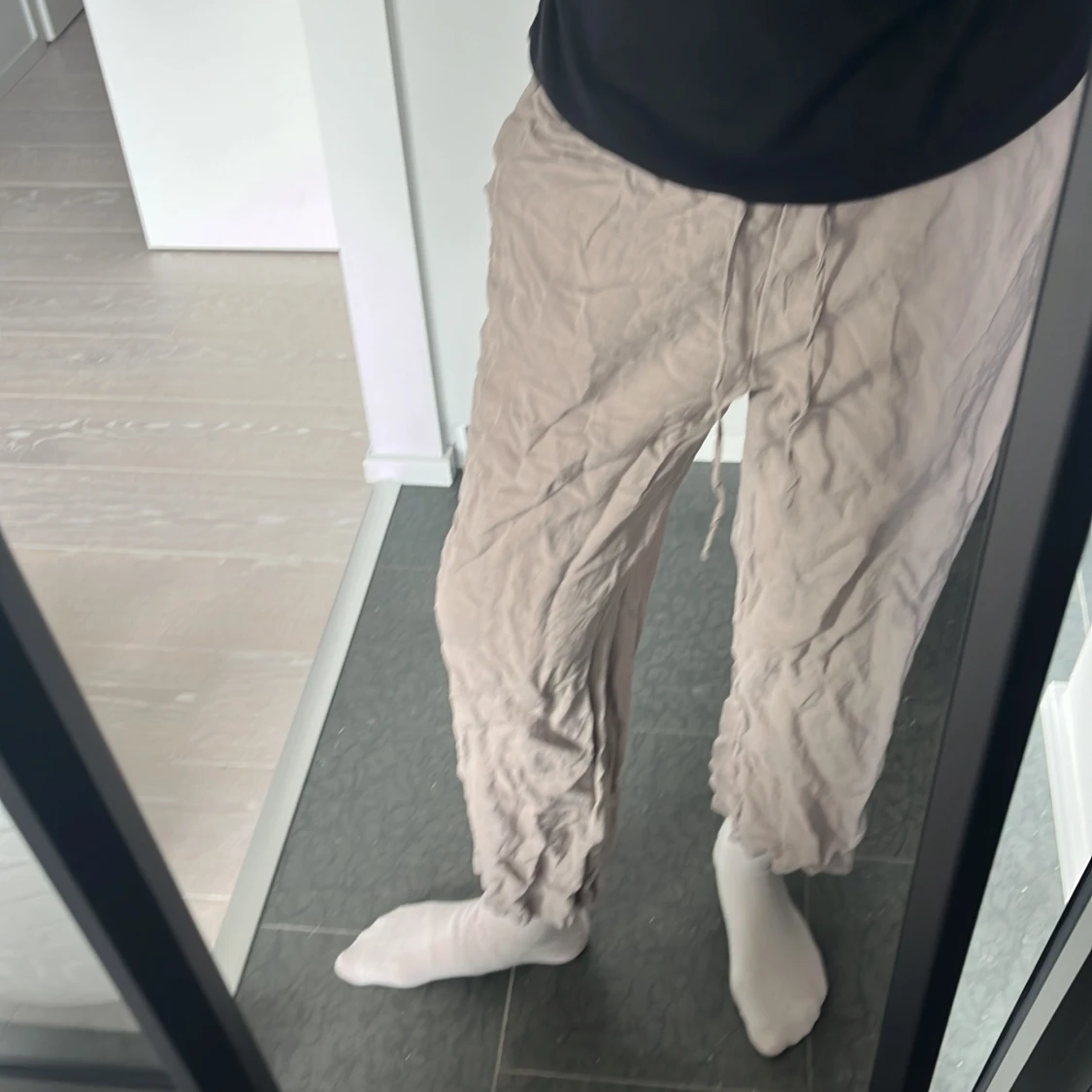 De är inte strukna för att jag har ingen strykjärn, definitivt längre när strykande. #HM #linnebyxor