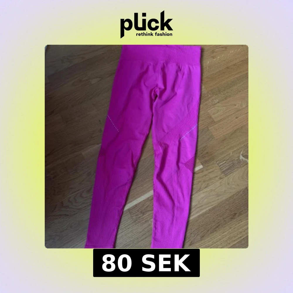 Snygga rosa seamless leggings från H&M Sport med ribbade och mesh-detaljer längs benen. Hög midja och stretchigt material som sitter skönt och följer kroppen. Perfekta för träning eller chill dagar. Material: 92% polyamid, 8% elastan.