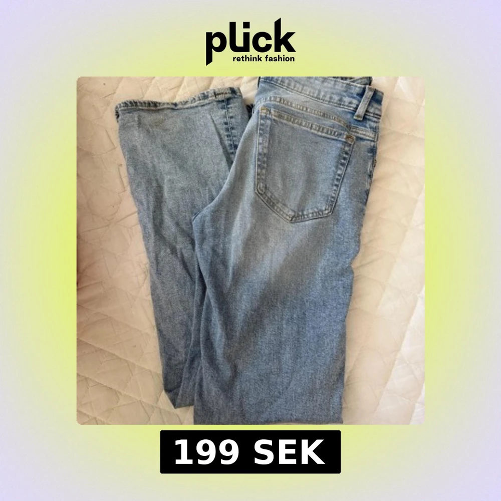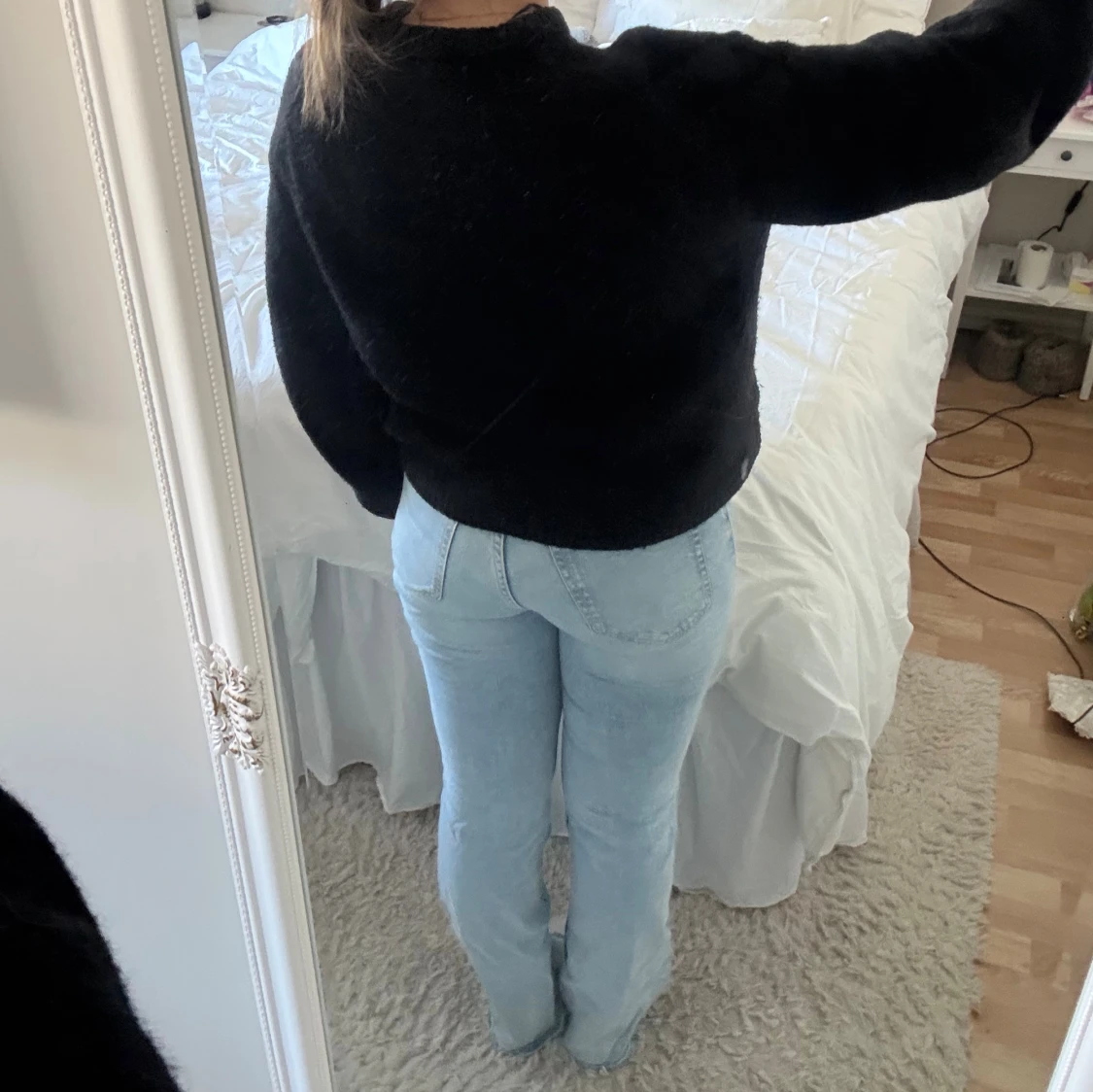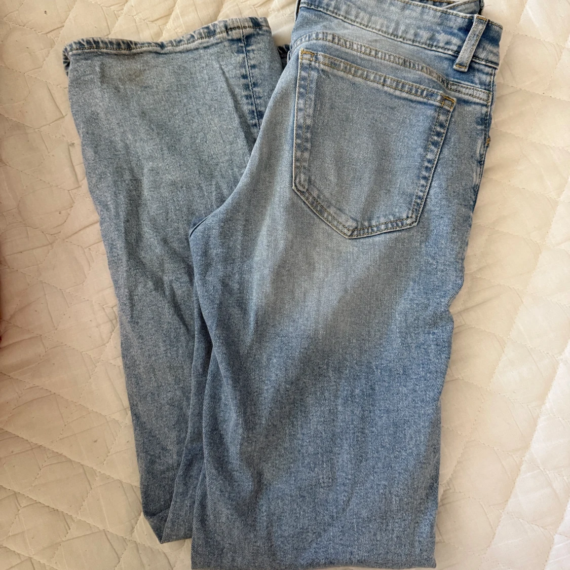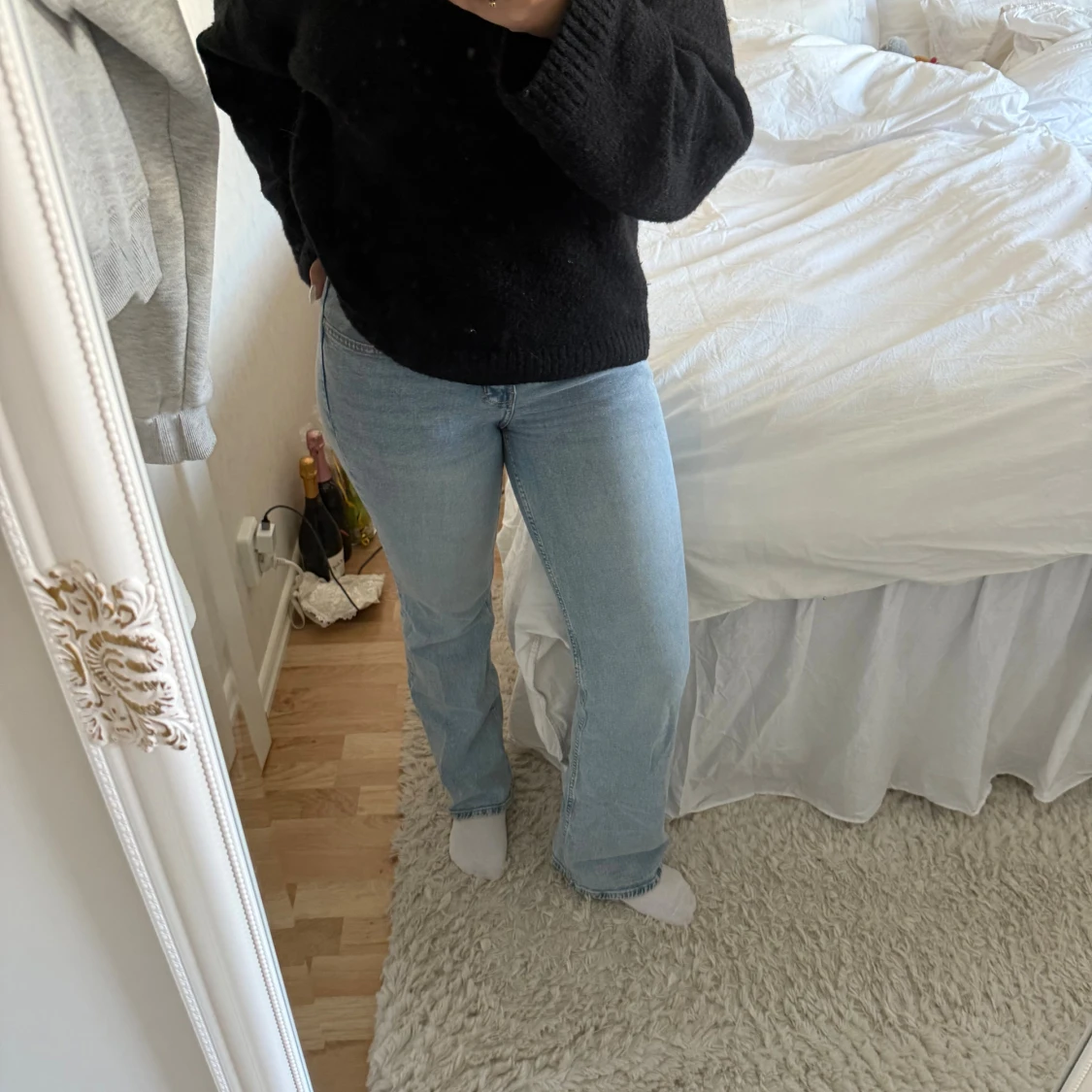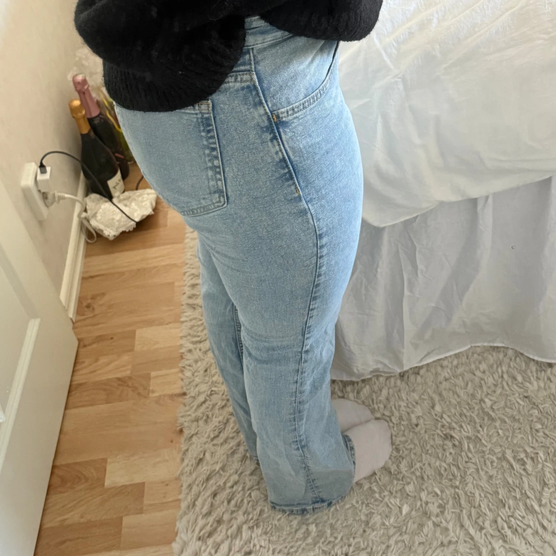 Säljer ett par ljusblå jeans med klassisk femficksdesign och bootcut. De är lowwaisted