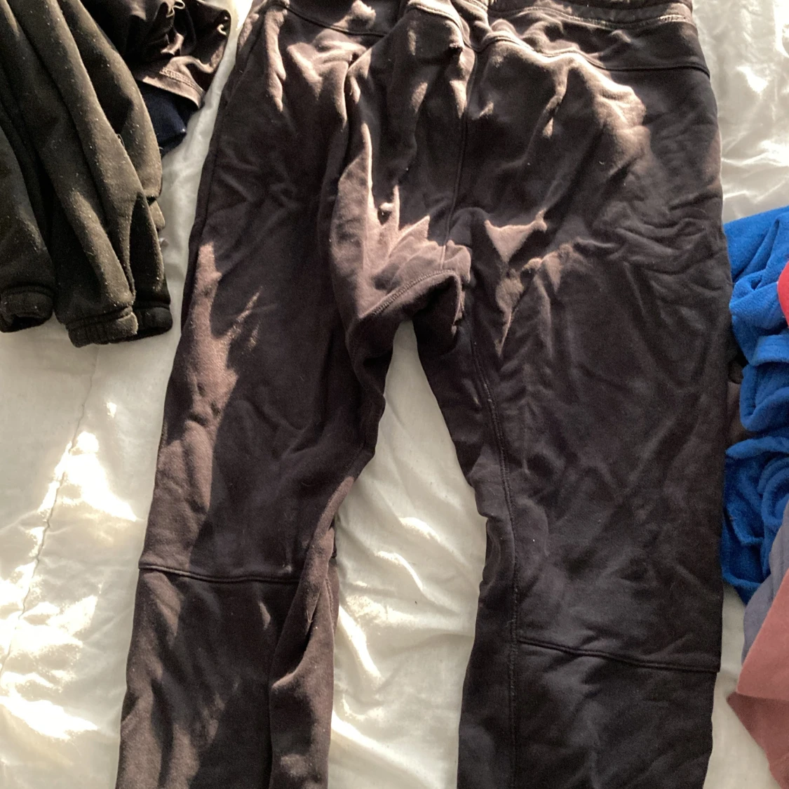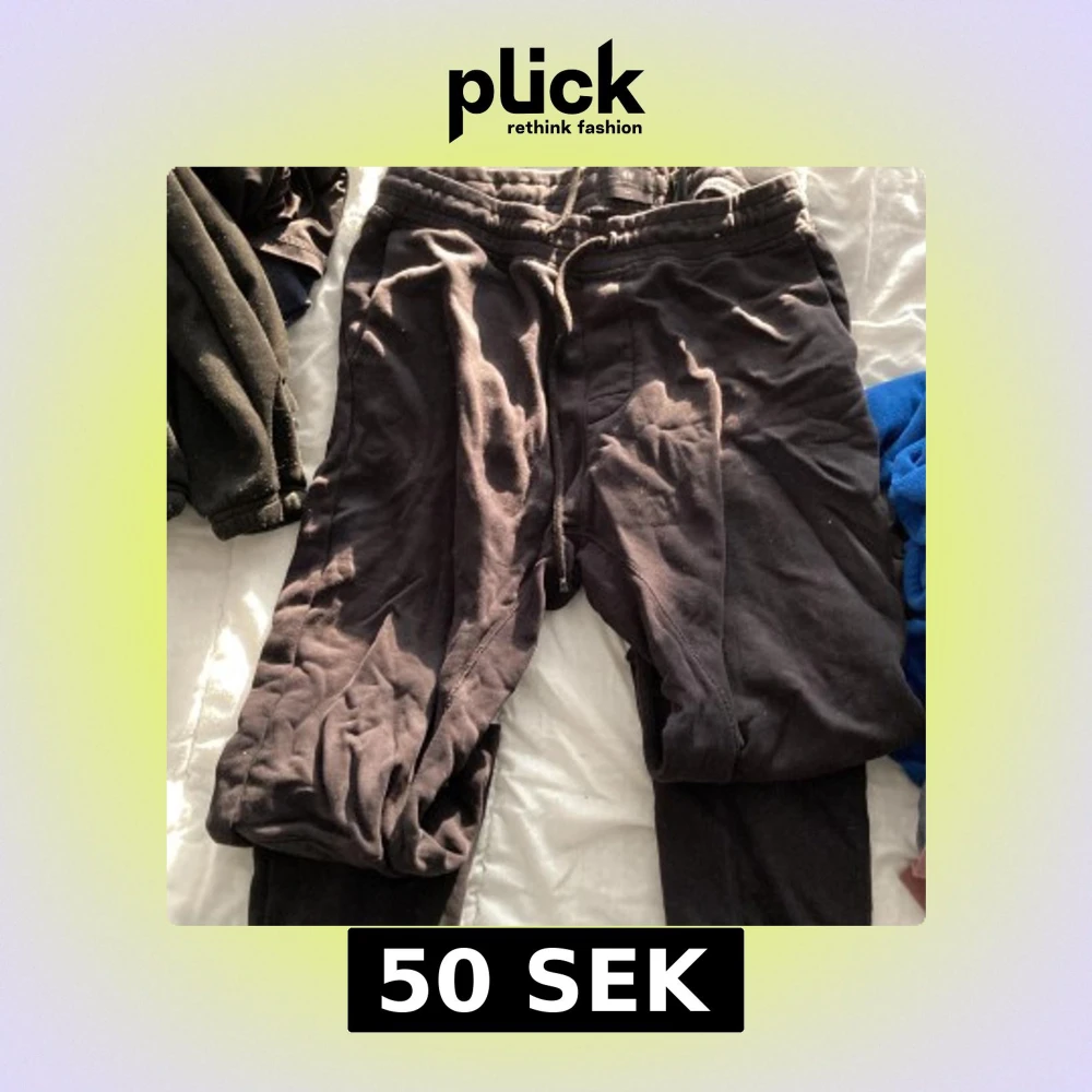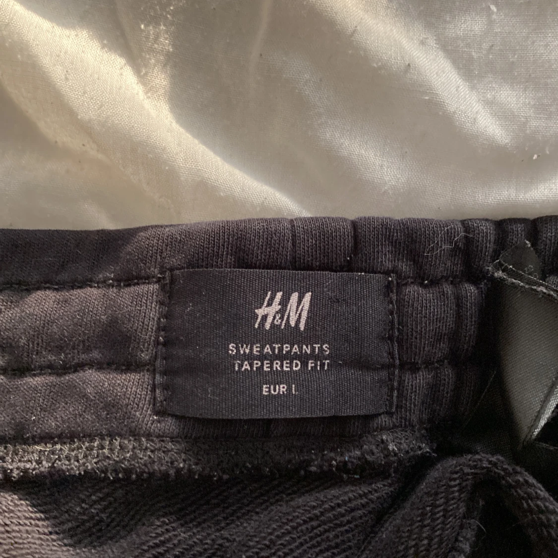 Svarta mjukisbyxor från H&M i storlek M med tapered fit. Byxorna har snörning i midjan och är gjorda i mjukt bomullsmaterial. Perfekta för chill dagar eller att sova i. Köpt 2020 men använt ett par gånger bara.