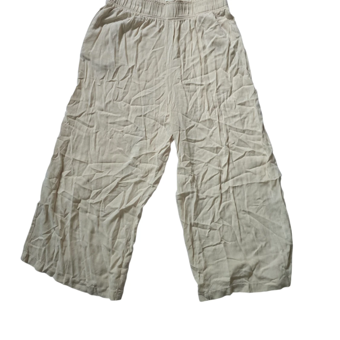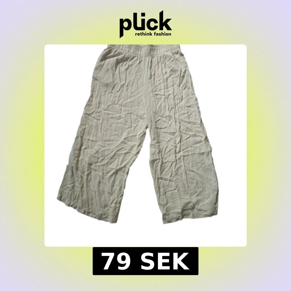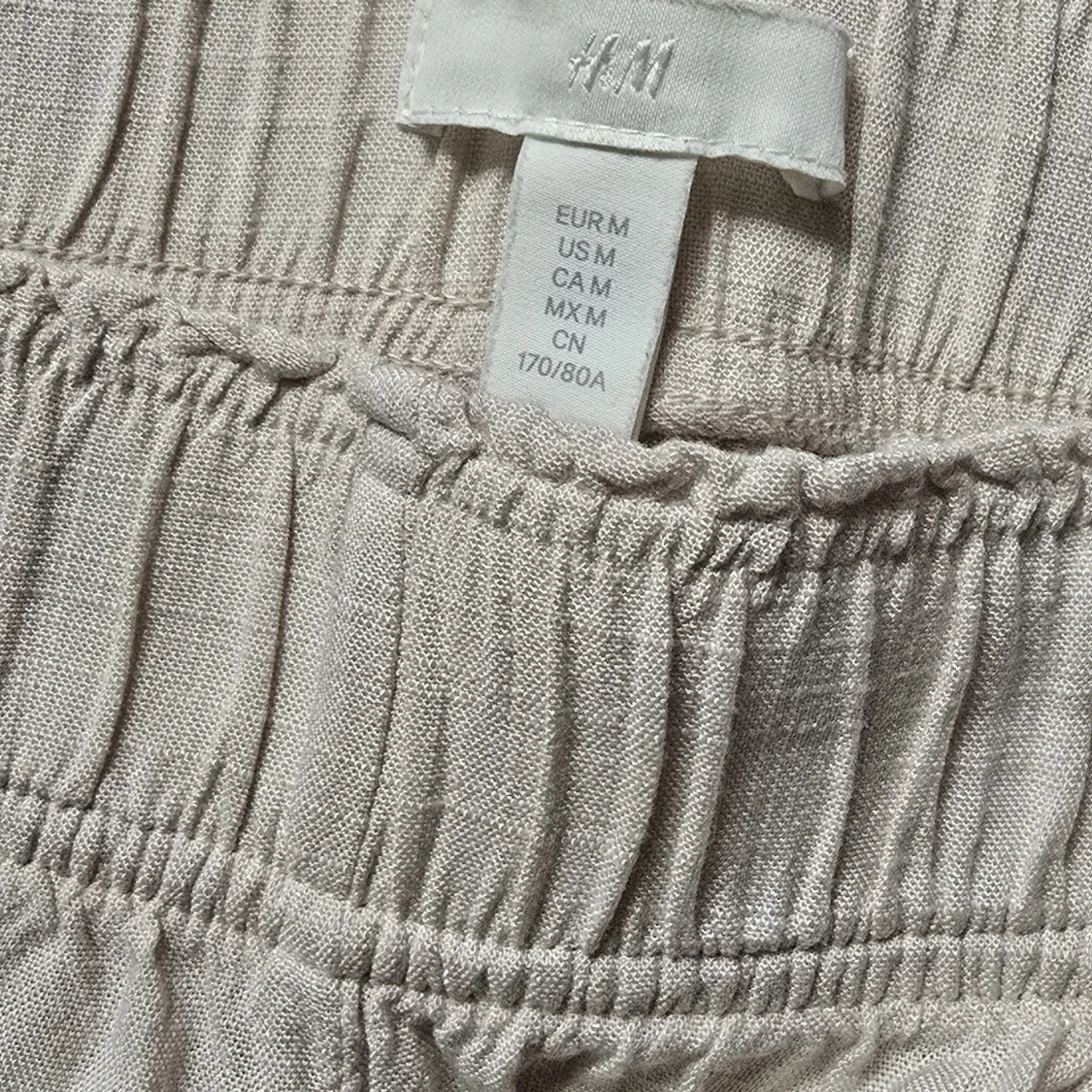 Säljer ett par beiga linnebyxor från H&M i storlek M. Byxorna har resår i midjan, är vida i modellen och tillverkade i ett lätt och luftigt linnematerial. Perfekta för en chill och avslappnad stil under varmare dagar.