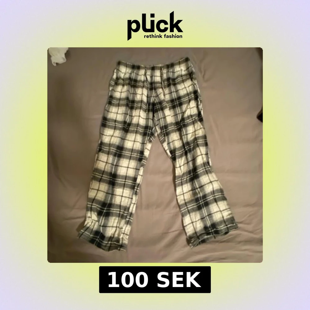 Rutiga pyjamasbyxor från H&M i svart och vitt. Byxorna har elastisk midja och avslappnad passform. Storlek M
