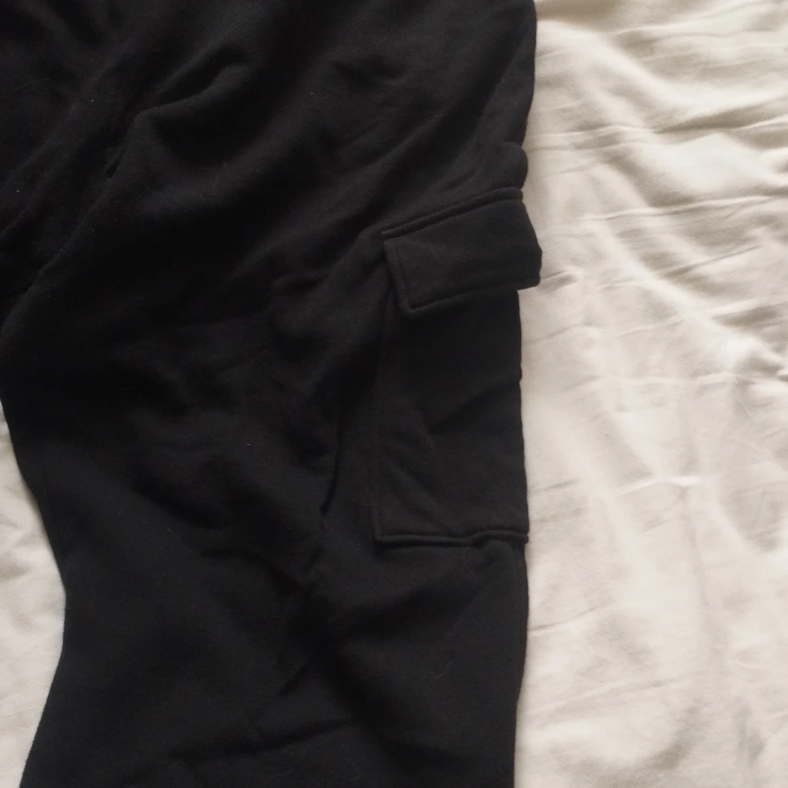 Ett par svarta mjukisbyxor från H&M i storlek S. Med två fickor på benen på vardera sida