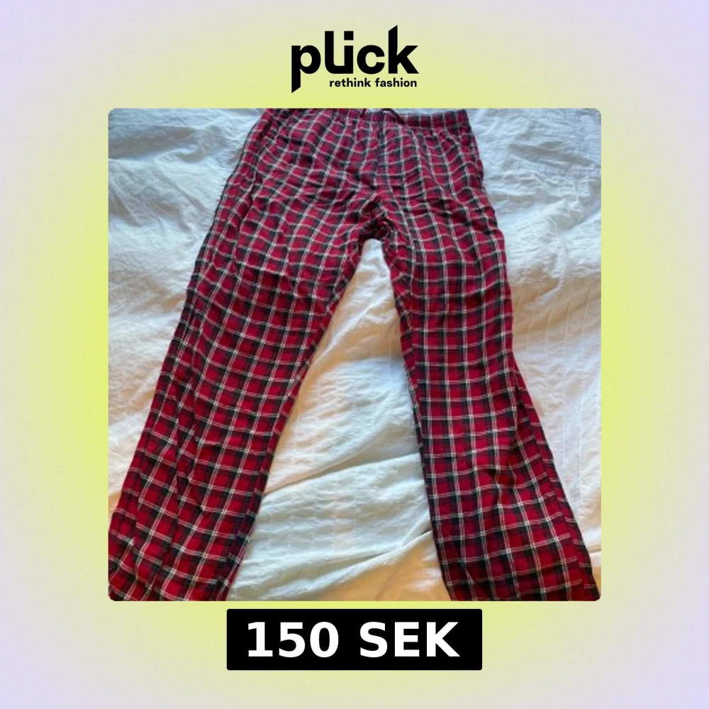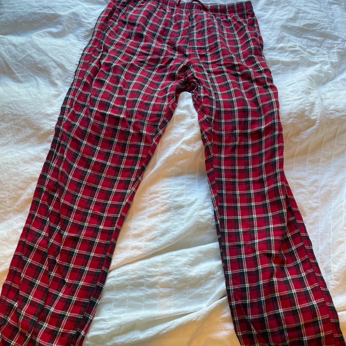 Rödrutiga byxor från H&M i mjuk bomull. Klassisk rutig design i rött, svart och vitt med elastisk midja för extra komfort. Perfekta för chill dagar hemma eller när du vill ha en avslappnad look.