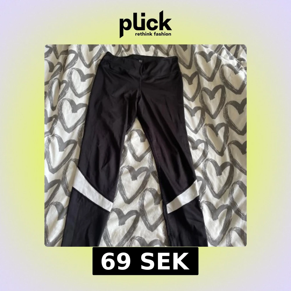 Svarta leggings från H&M Sport med vita detaljer vid benen. Sitter tight och är perfekta för träning eller chill. Gjorda i stretchigt syntetmaterial som andas och ger bra rörelsefrihet.