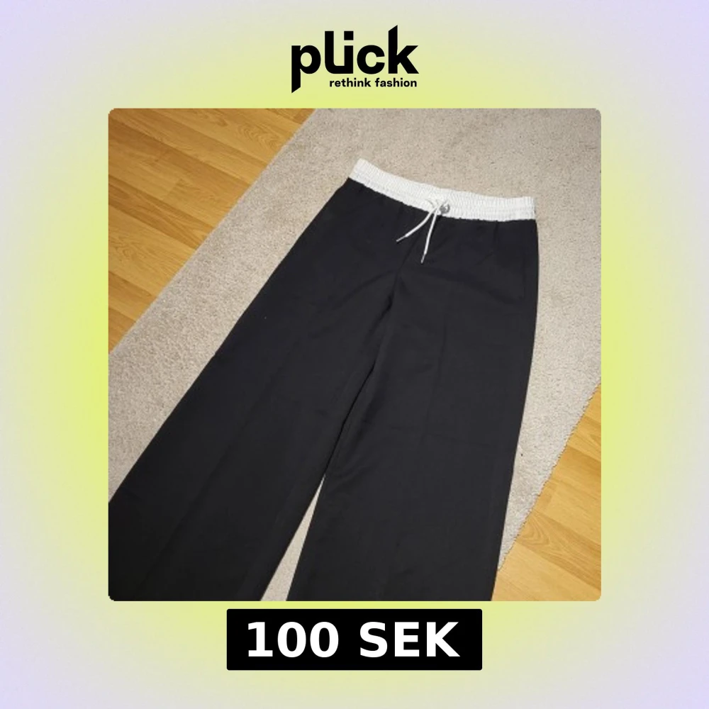 Snygga svarta byxor från HM med en kontrasterande vit resårmidja och snörning. Perfekta för en avslappnad stil med en loose passform.