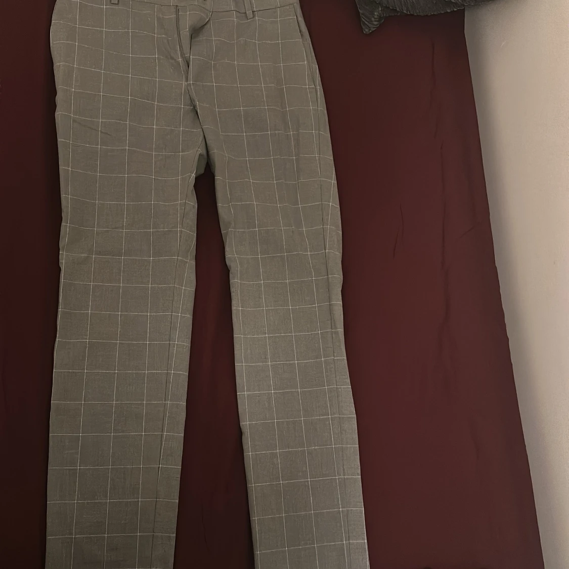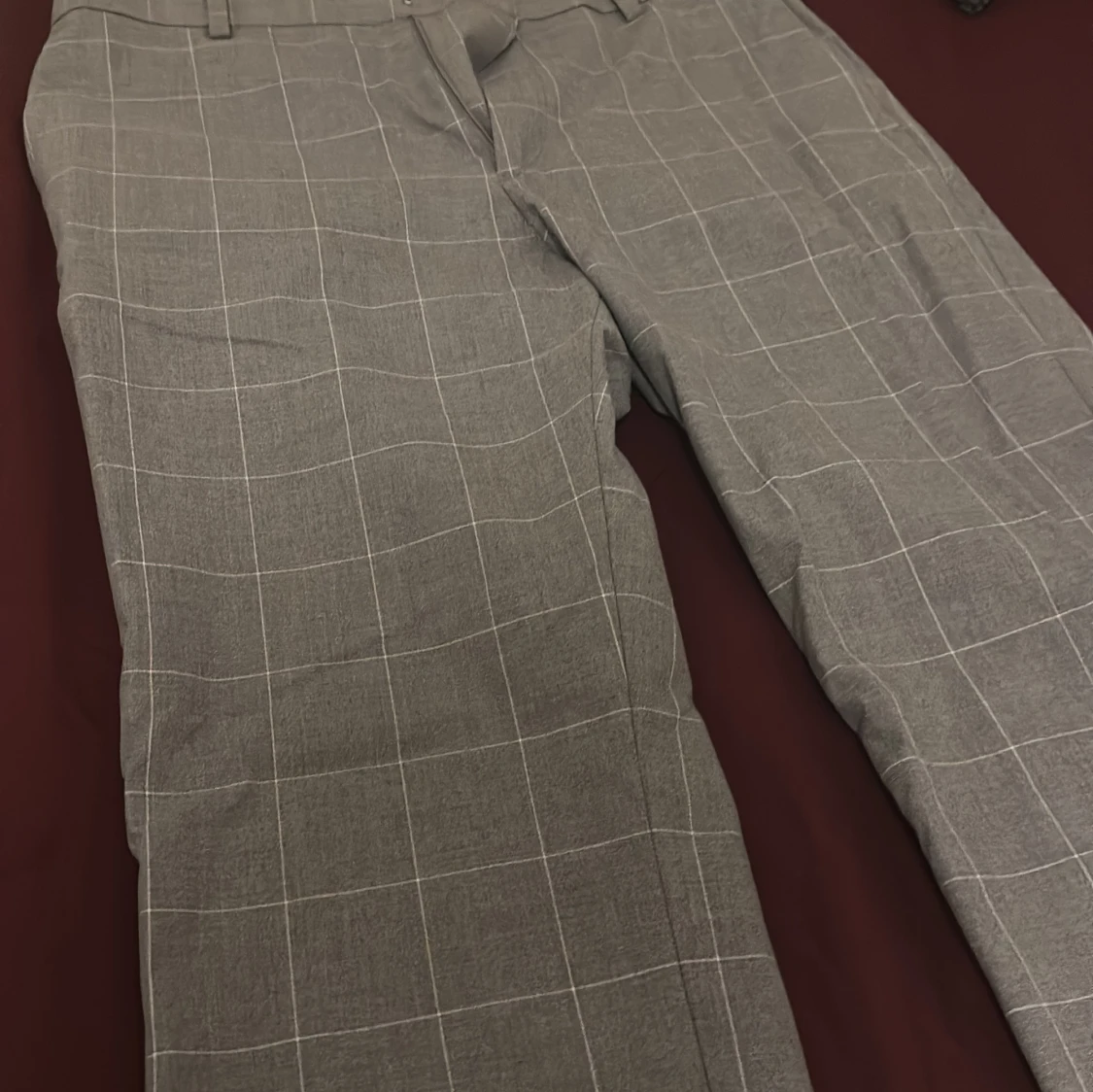 Grå rutiga kostymbyxor