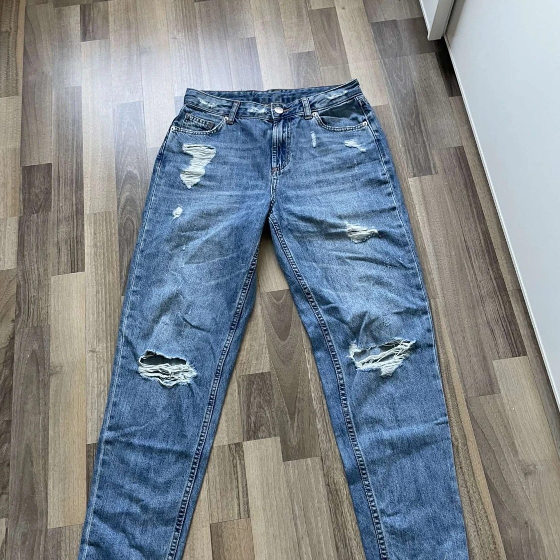 Blåa jeans i storleken S men passar även XS. Har används några gånger men har inga fel alls.