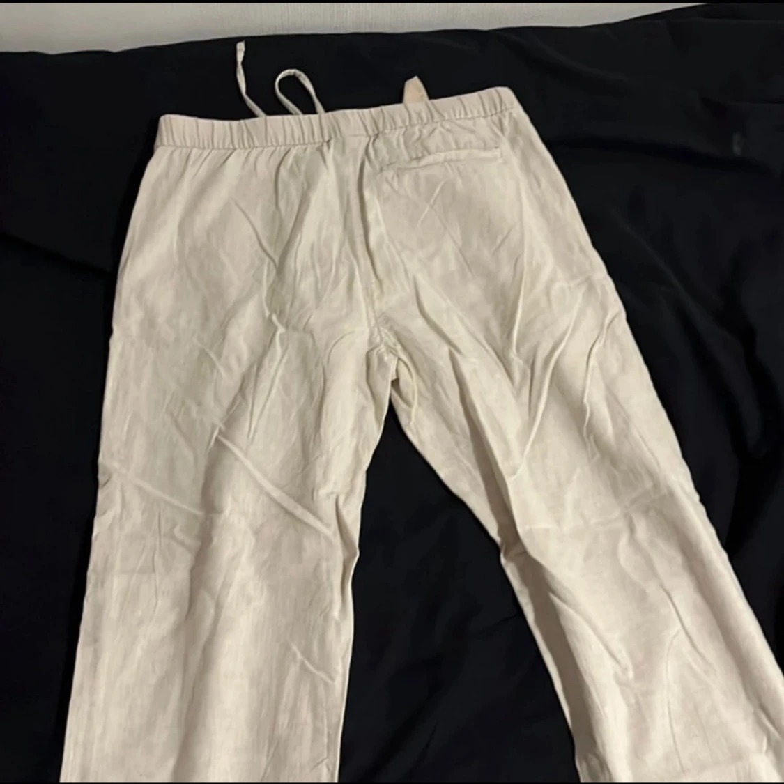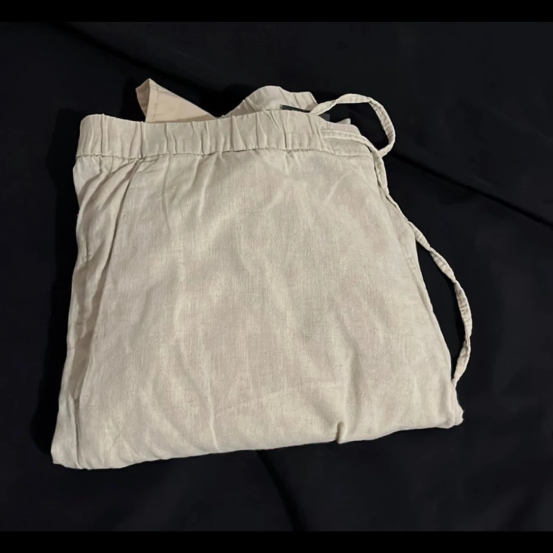 Luftiga beiga linnebyxor från H&M i regular fit. Byxorna har elastisk midja med snörning och raka ben. Perfekta för varmare dagar och chill vibes. Snygg minimalistisk look och sköna fickor på sidorna.