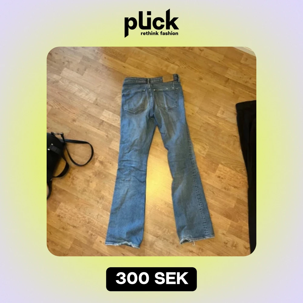 Säljer dessa jeans i storlek 26. Passar mig i längd som är 161 ungefär. Lite slitna vid hälarna annars bra skick