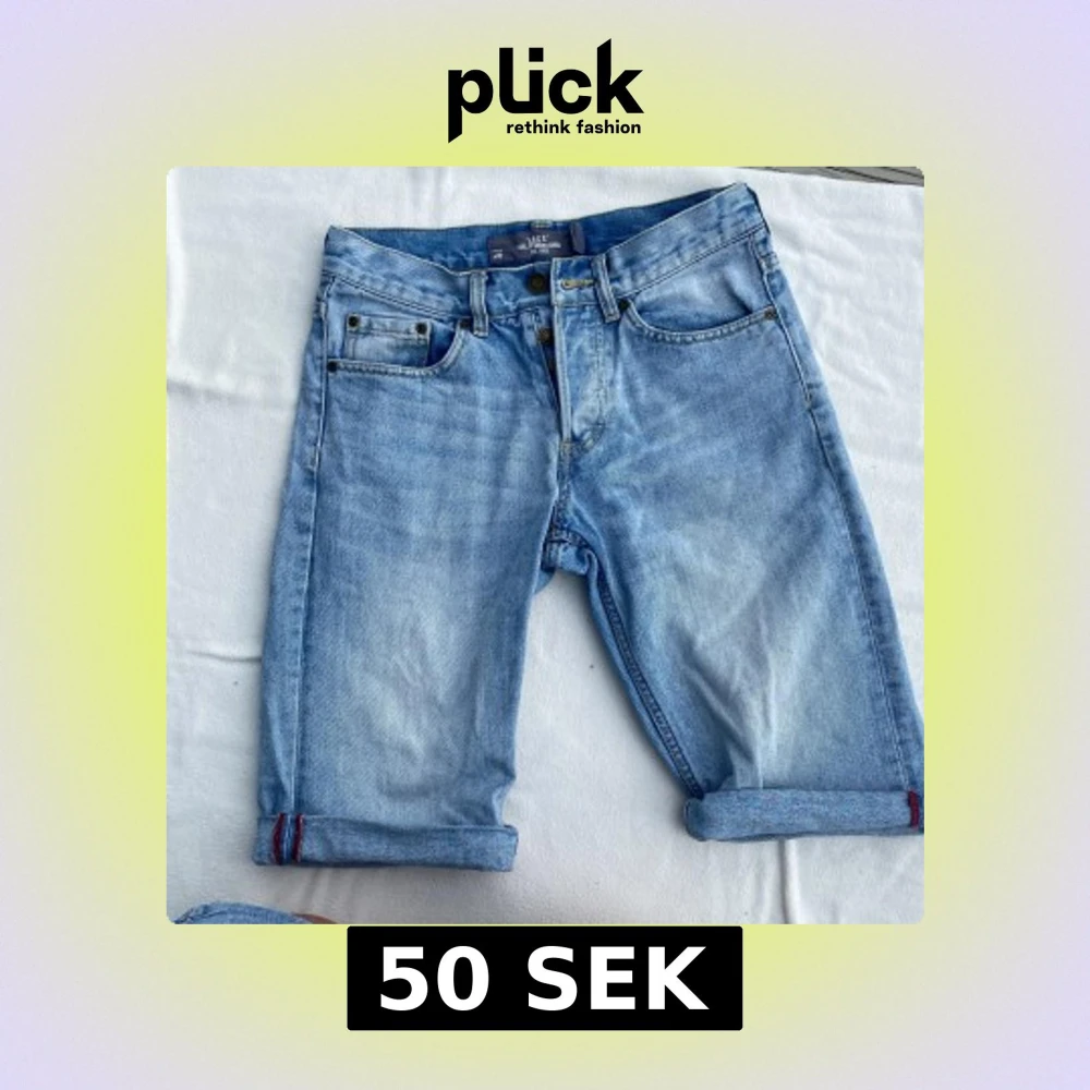 Klassiska blå jeansshorts från H&M med fem fickor och snygga uppvikta benslut. Shortsen har normal passform och är tillverkade i mjukt denimtyg. Perfekta för varma dagar och enkel att matcha med t-shirt eller hoodie.