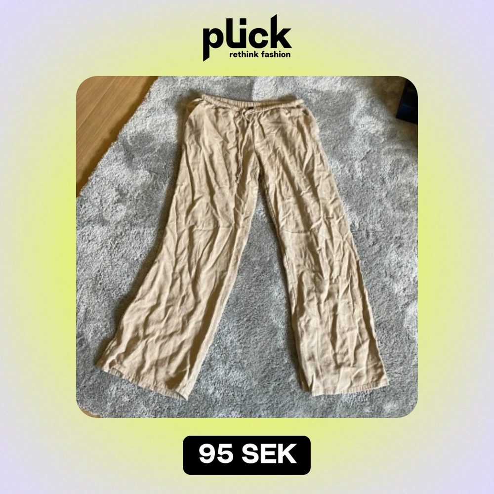 Säljer dessa lågmidjade linnebyxor ifrån h&m💕Inga defekter förutom att de är skrynkliga som ni ser på bilden. skriv t mig vid mått, frågor osv.
