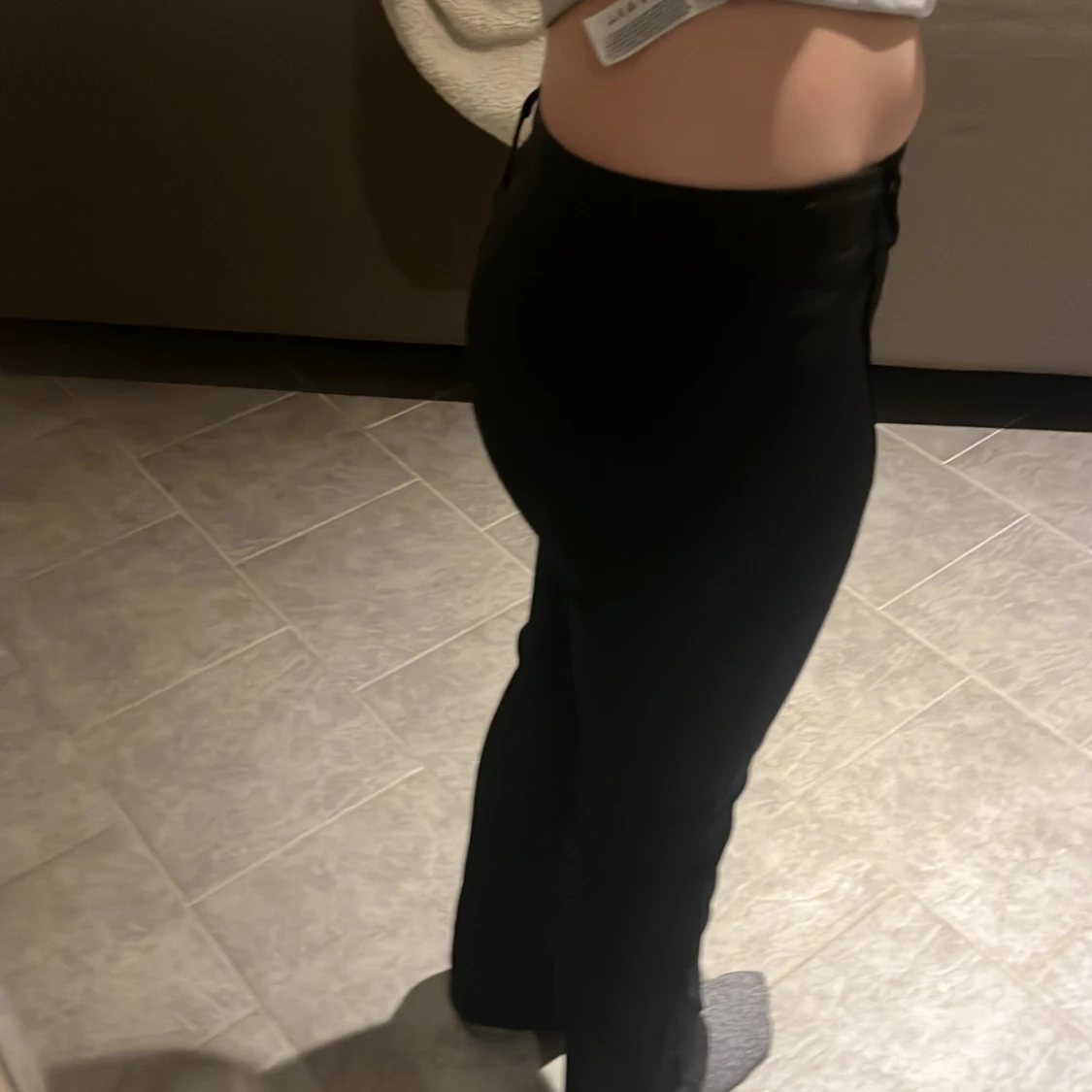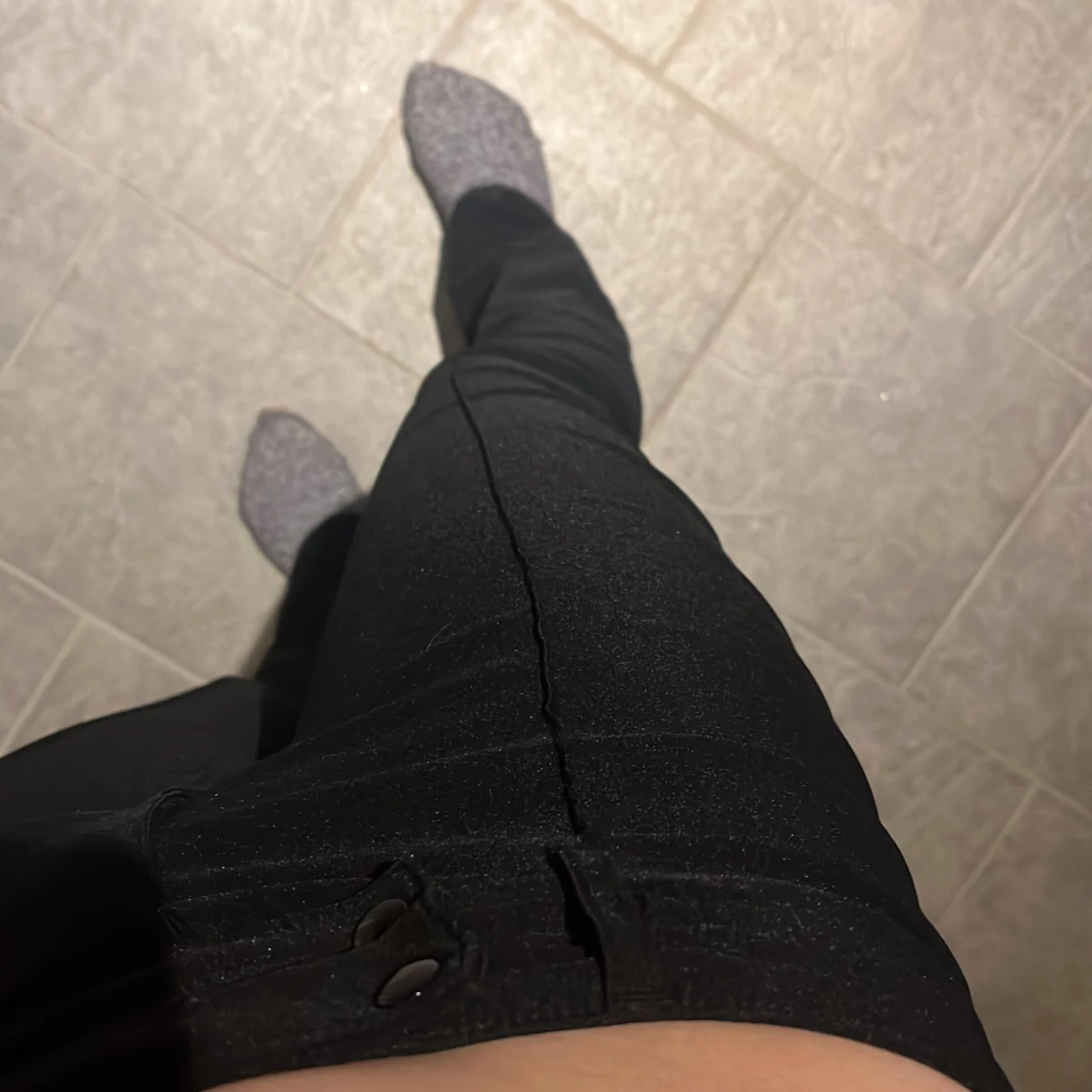 Snygga svarta kostym byxor med en bra passform. De har en klassisk design med knappar och dragkedja framtill. Perfekta för en stilren look.