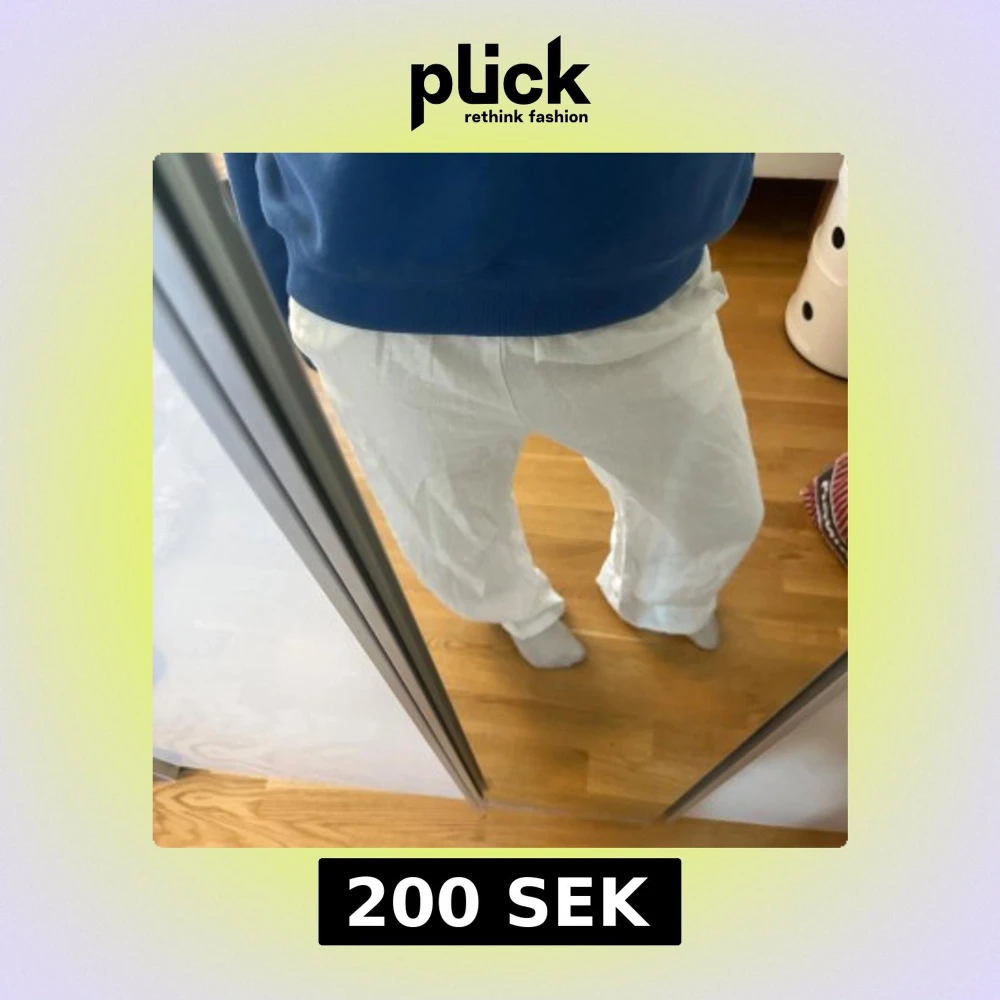 Säljer ett par vita linnebyxor från HM i storlek 13 år men dem passar som en xs och på mig som bär S 🤗❤️