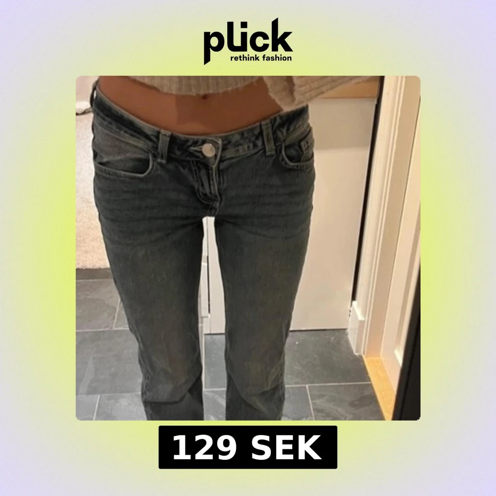 Snygga mörkblå jeans med låg midja. Använda fåtal gånger så i väldigt fint skick. Mitt pris kan diskuteras💗