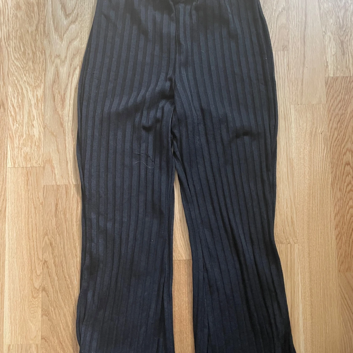 Svarta ribbade byxor med vida ben