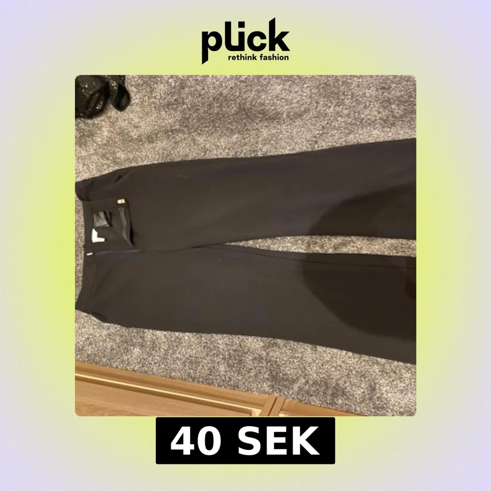 Säljer ett par svarta kostymbyxor i storlek XS. Byxorna har en klassisk rak passform och är tillverkade i ett mjukt material som känns bekvämt hela dagen. Perfekta för en clean och stilren look.
