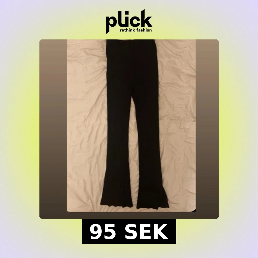 Svarta ribbade byxor med bootcut-modell och vågig kant längst ner. Byxorna har hög midja och är stretchiga, perfekta för en chill och trendig look.