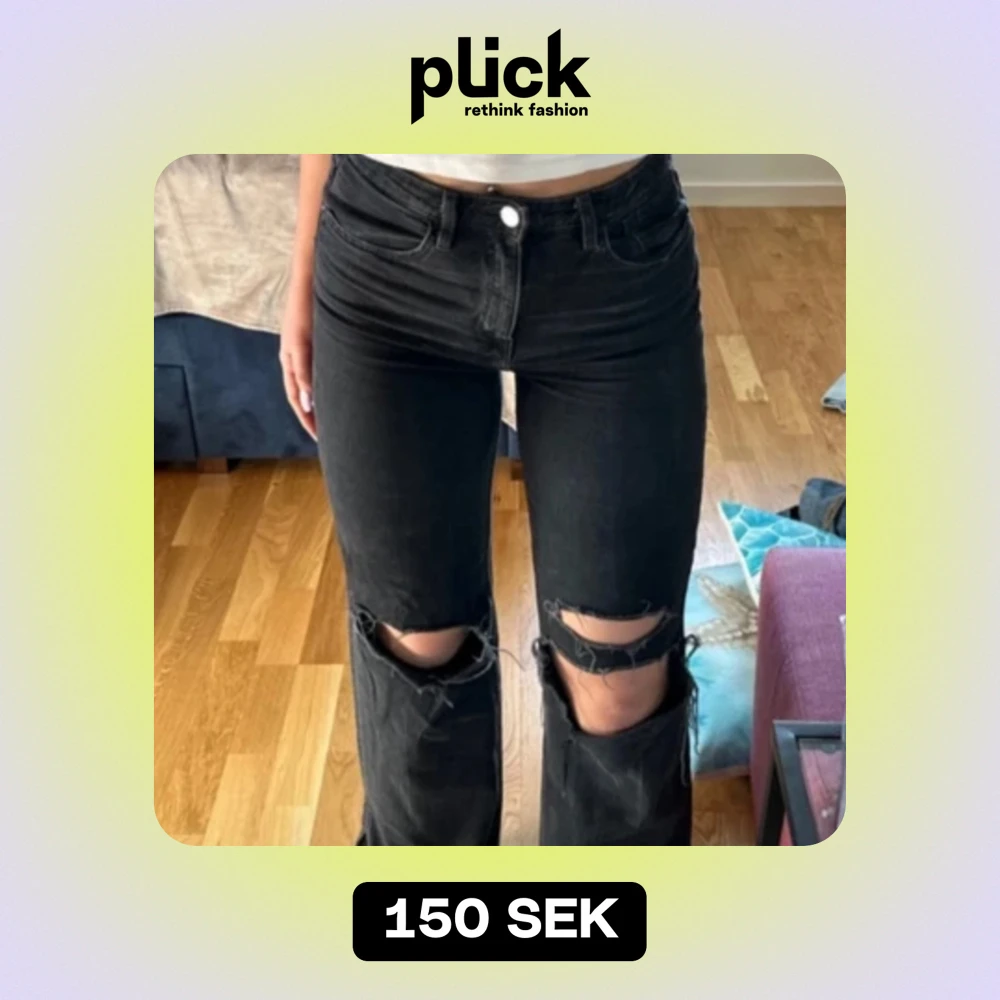 Svarta jeans med hål. Använda men fortsvarande i bra skick. Storlek XS-S. Kom privat för o diskutera priset