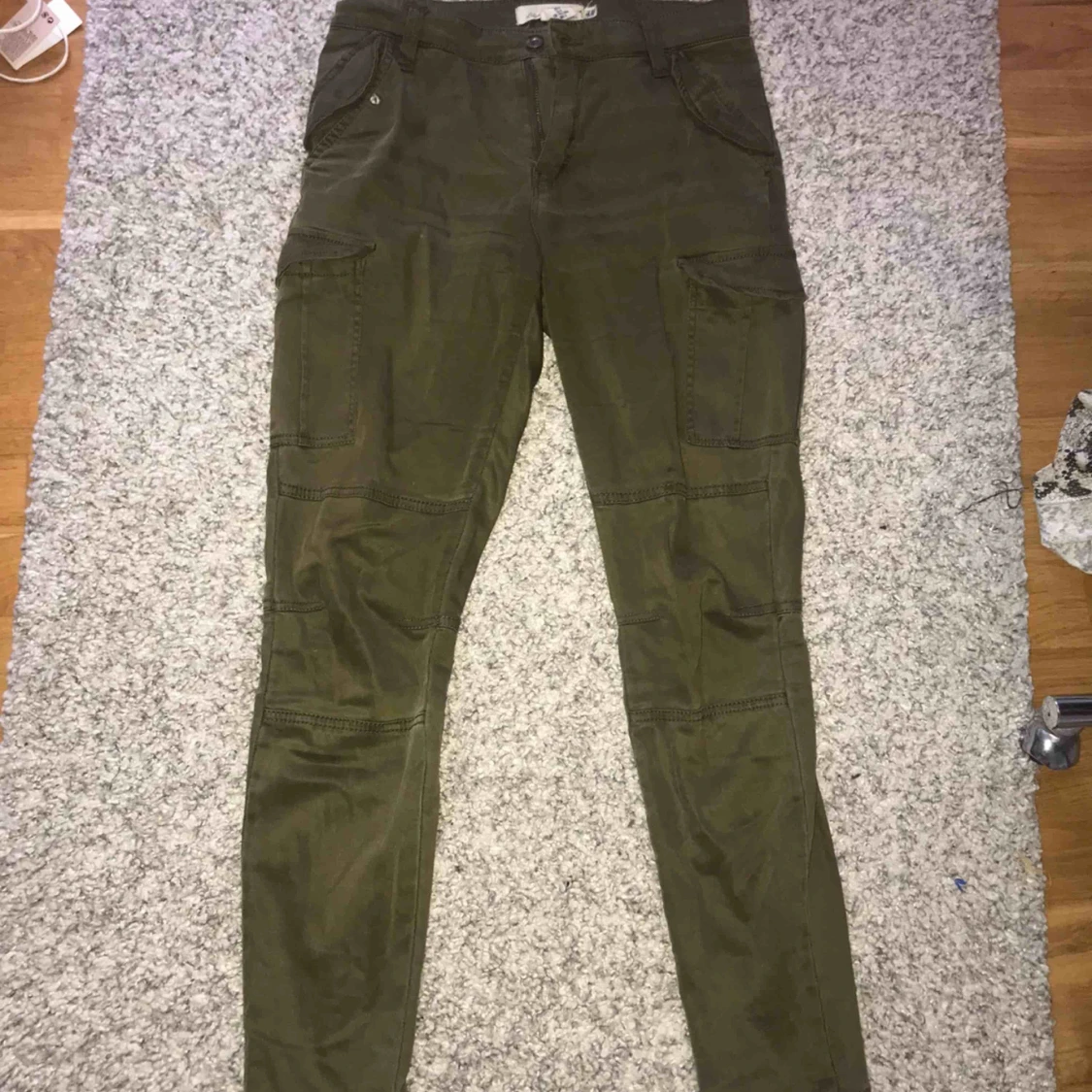 Ett par schyssta gröna jeans med fickor på sidorna har ett tajt material och sitter bra, tyvärr har ena knappen åkt bort, men dem funkar väldigt bra iallafall frakt 50kr