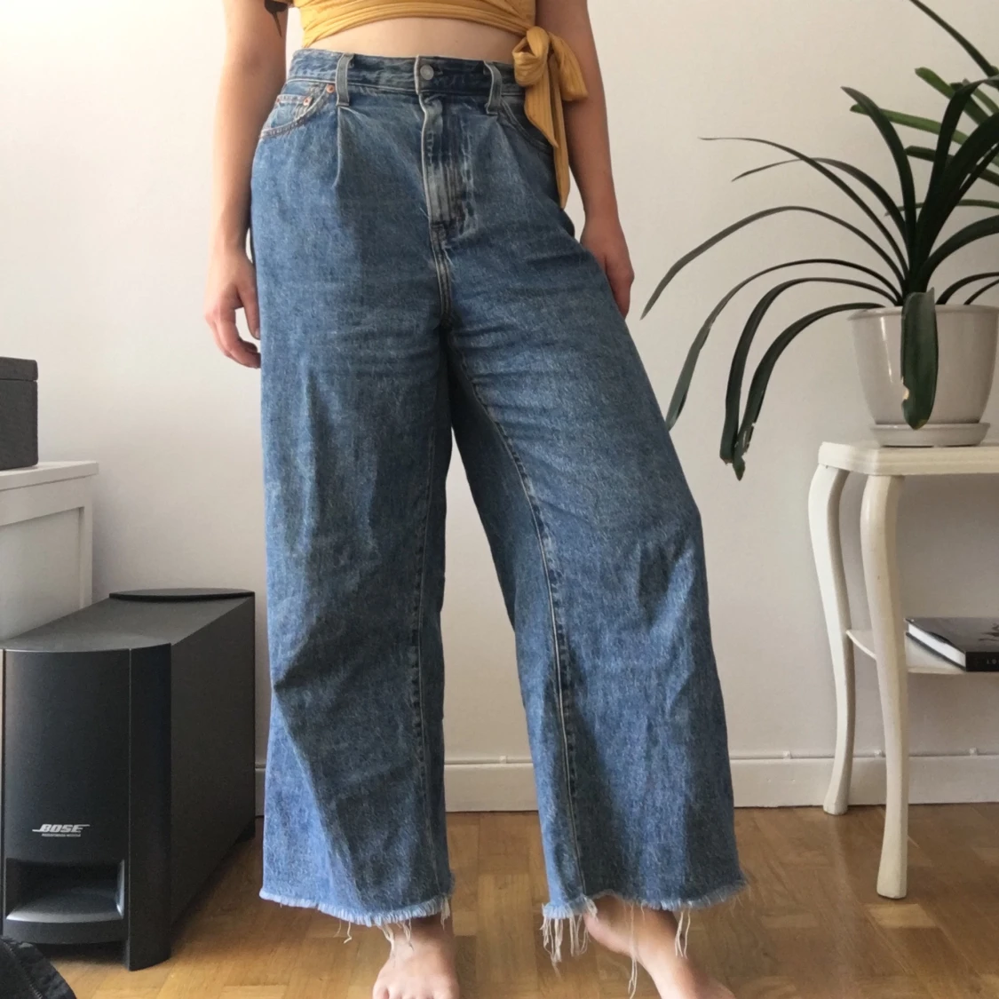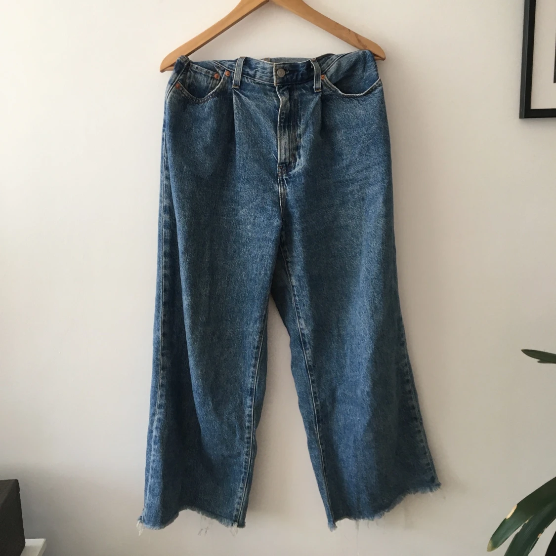 Levis jeans i model ”ribcage pleated crop”, hög midja med vida byxben ⭐️ W: 28 L: 27 pris: 250kr