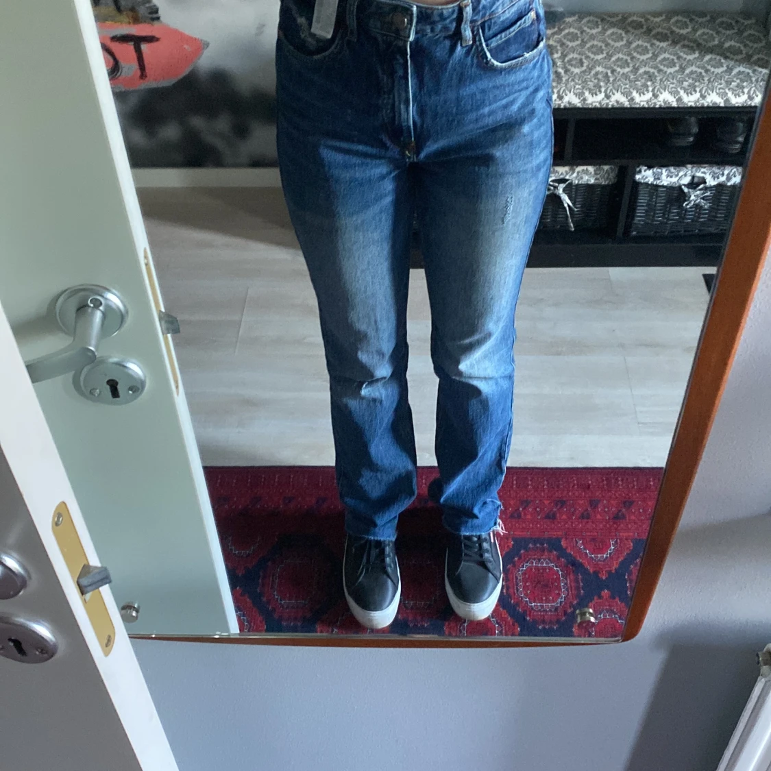 Säljer en av mina favojeans från Zara i storlek 38, högmidjade. Har använt ett fåtal gånger men finns inget tecken på slitage (det ska va slittet där nere på byxorna) Säljer dem för att de har blivit för stora för mig. Köpte för 400kr säljer för 200kr.