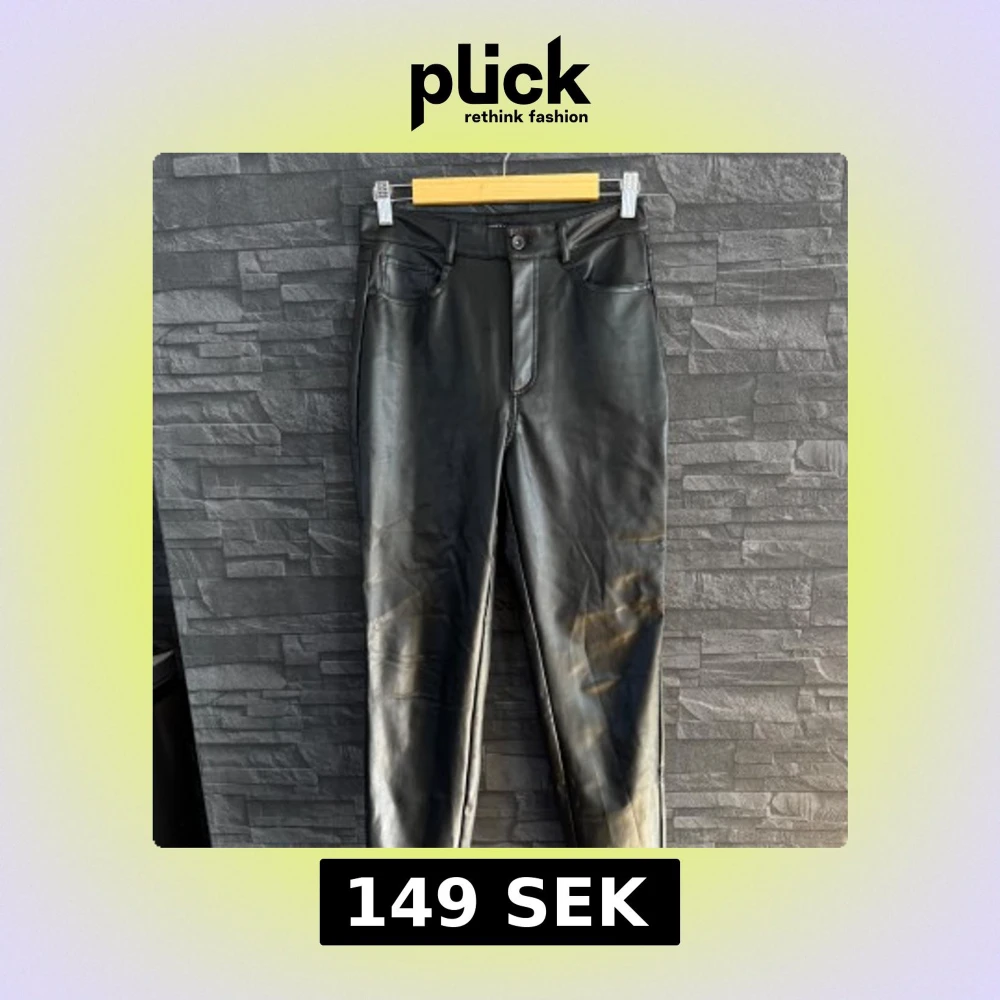 Skinnbyxor/läderbyxor i ”mom” modell, stl M, passar mig som är 36/38. Väldigt stretchiga och SKÖNA🤩nypris kring 600kr. Använt dom en kväll.