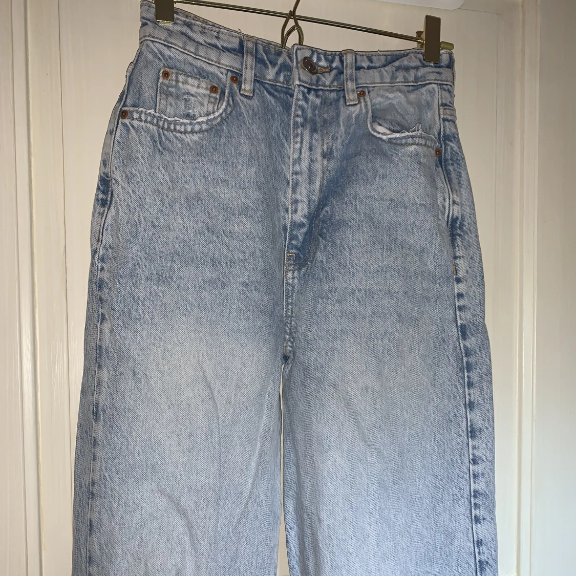 Fint skick, sitter bra och bekväma. Utsvängda ben, högmidjade, hål på knäna.