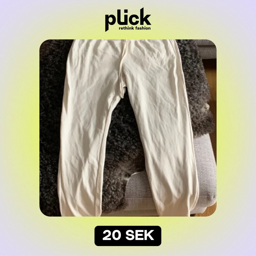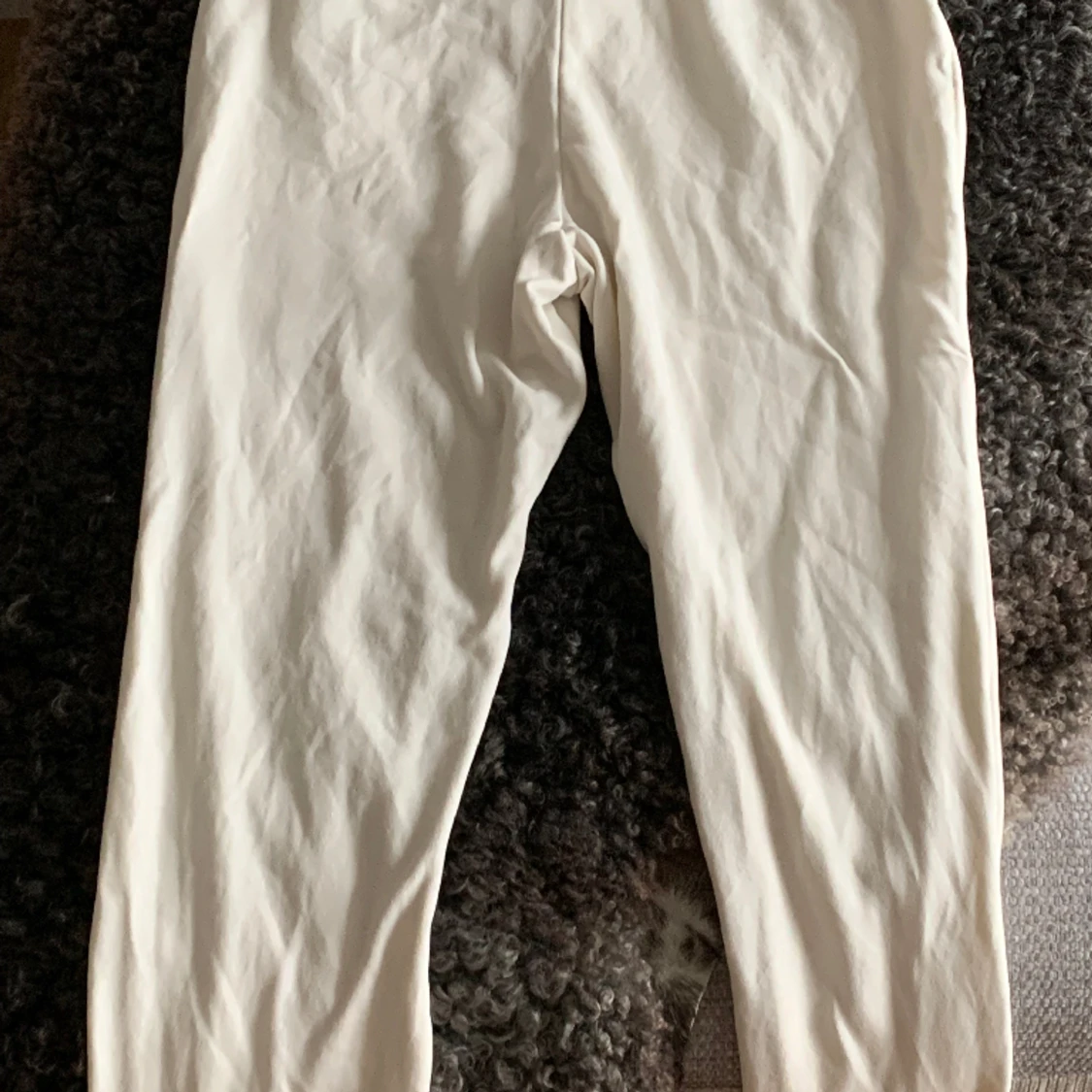 Ett par högmidjade mjukis byxor. Aldrig använda, inga fläckar, bra skick. Färgen är en blandning mellan vit och beige