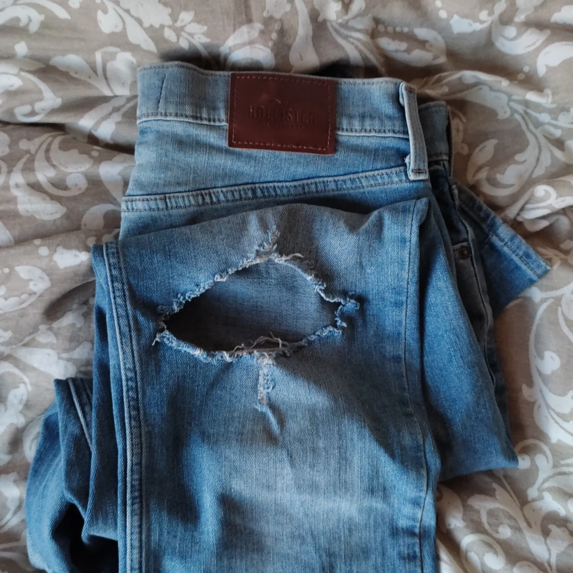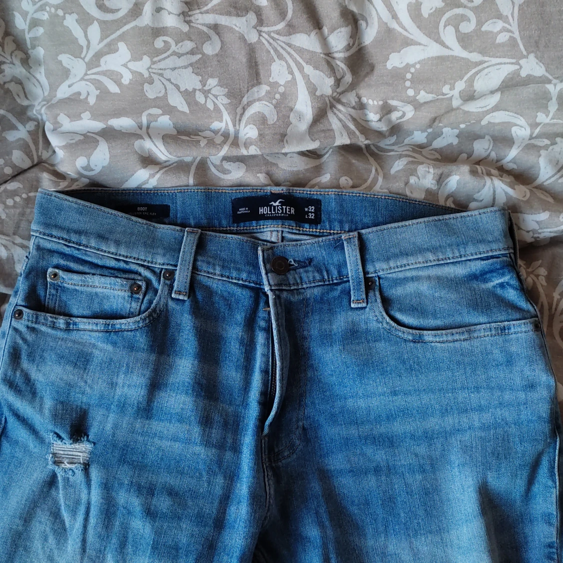 Ett par jättesnygga Hollister jeans i storleken 32/32, M. De är bootcut och ger dig rockarkänslan. Hål vid knäna (enligt design). Bara att skriva om ni har funderingar! Pris går att diskutera