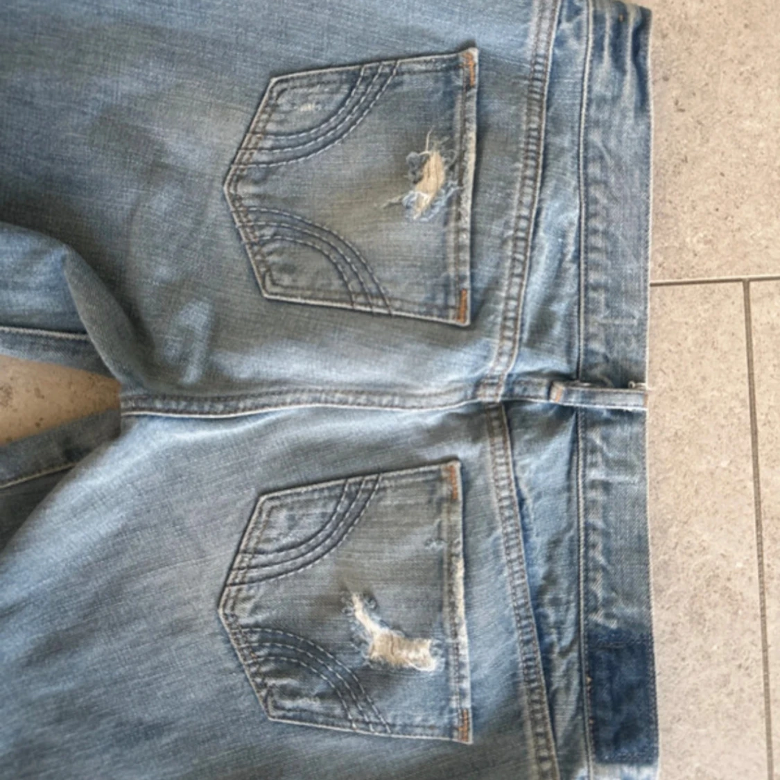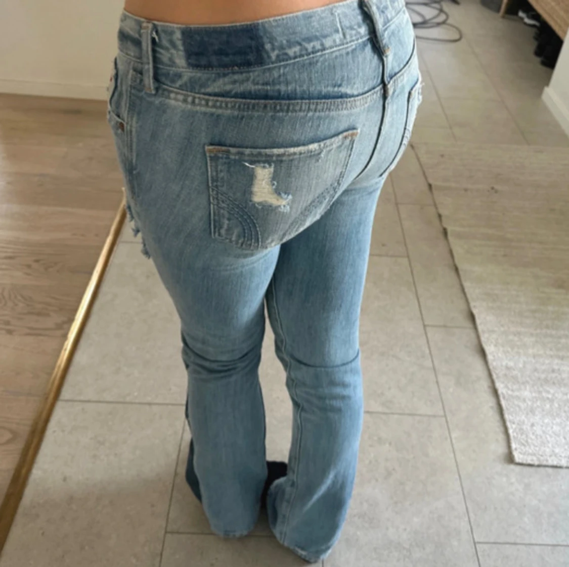 Supersnygga Lågmidjade bootcut jeans ifrån hollister. Sydda till bootcut väldigt snyggt! Sjukt populära och i den perfekta ljusblå färgen. DRÖMJEANSEN!!🥳 innerbenslängden är 80-81cm och midjemått är 39cm.