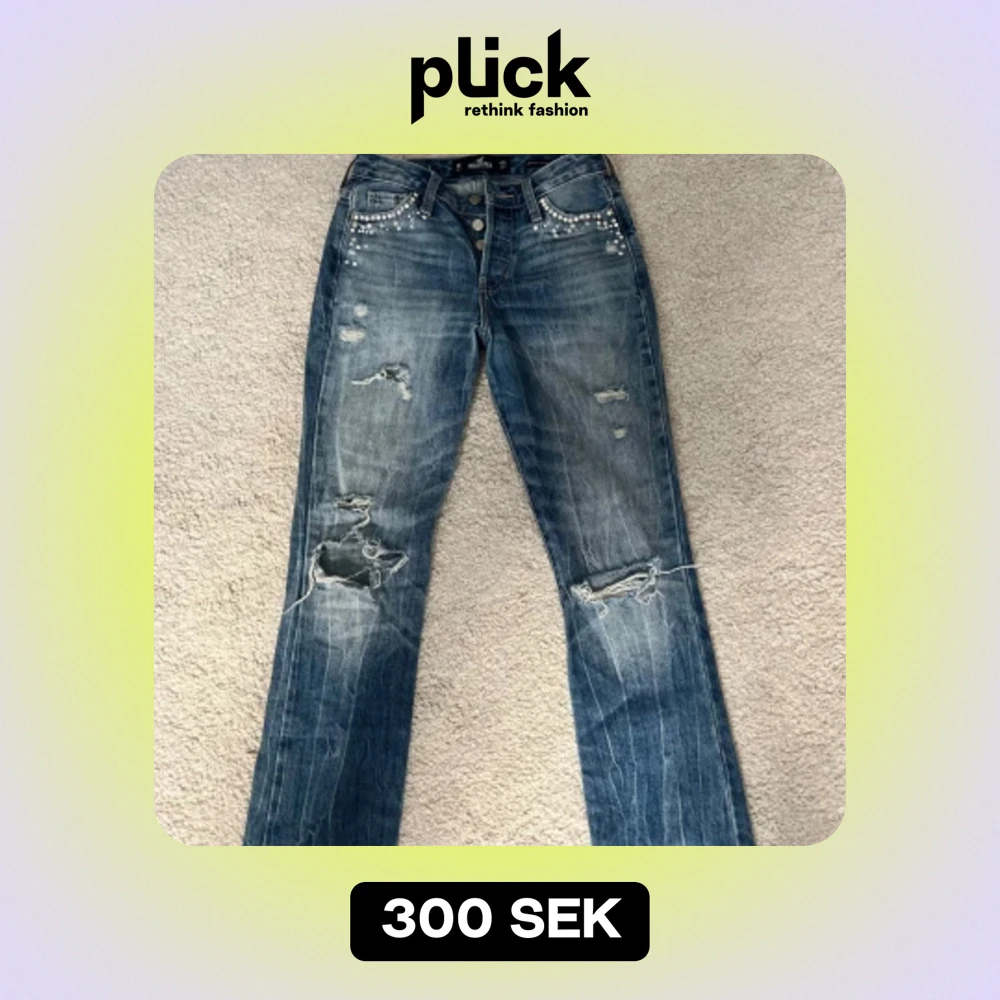 Snygga jeans med hål från hollister! Storlek W24/L27, skulle säga att de motsvarar 32💕