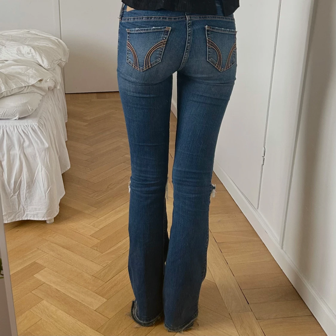 Säljer nu ett par av mina favorit jeans, uppsprättade nertill så att de passar perfekt på mig som är 173💖MÅTT: midja 33cm (stretchiga!!) innerben 84cm