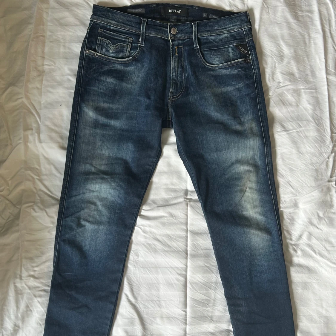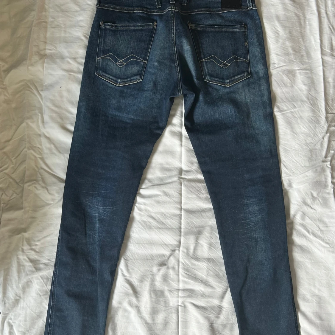 Snygga blå Replay Anbass jeans i storlek W33 L32 passar även W32. Jeansen är slim fit och har en klassisk femficksdesign. Perfekta för dig som gillar en modern och stilren look. INGA defekter/skador!✌️
