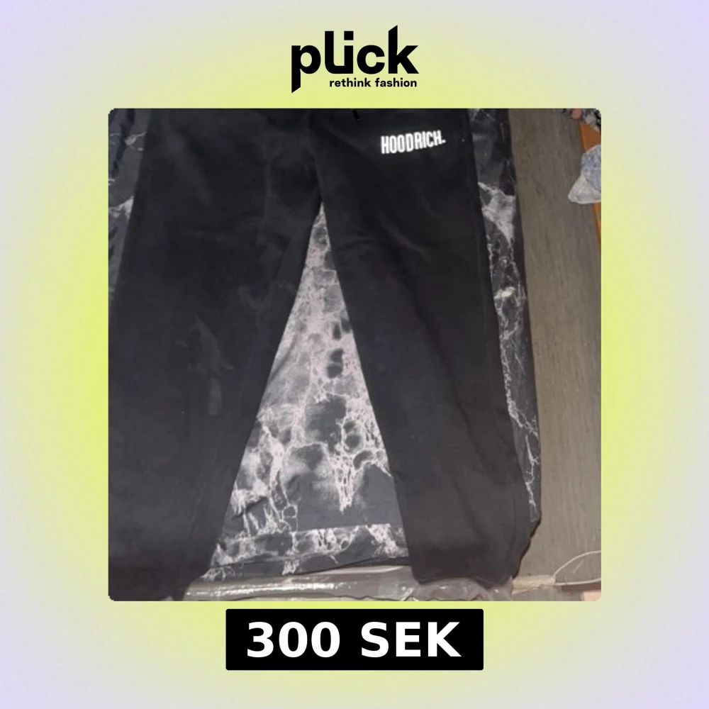 Svarta mjukisbyxor från Hoodrich med vit logga på benet och snygga detaljer som snörning i midjan. Byxorna har en loose passform och är tillverkade i mjukt bomullsmaterial, perfekta för chill dagar. Snygg streetwear-vibe och bekväm känsla.