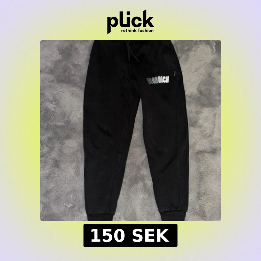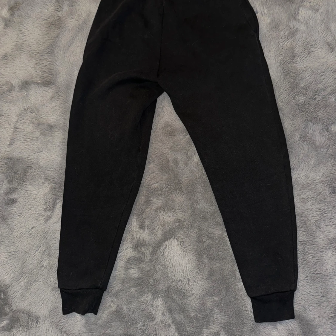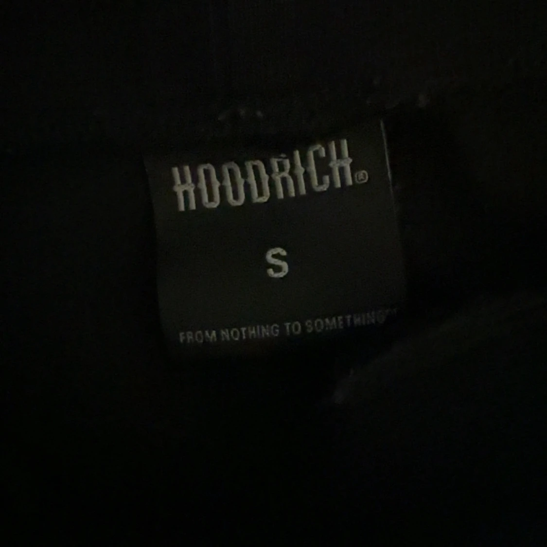 Svarta mjukisbyxor från Hoodrich i storlek S. Byxorna har resår och snörning i midjan, muddar vid bensluten och Hoodrich-logga i vitt och silver på ena benet. Tillverkade i bomull och polyester för en skön och avslappnad känsla.