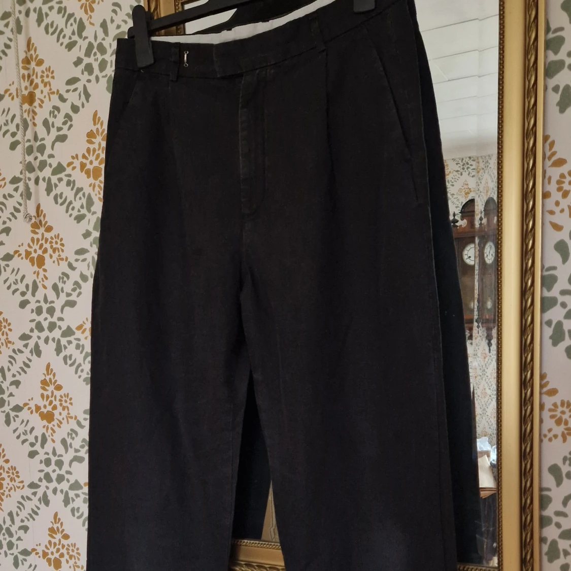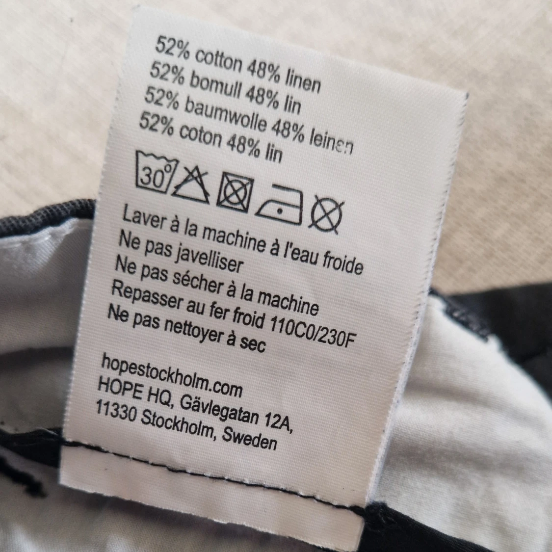 Hope alto i storlek 42. Precis köpta sh av mig men blev tyvärr lite för tighta för mig. Förra ägaren sydde på extra hyska då de var för stora i midjan. Den går lätt att sprättas bort. Det ordinarie hyskan finns också lvar. Inga andra anmärkningar. Färgen är lite asfalt/svart med grå inslag som svarta linnebyxor. Material bomull och lin. Skitsnygga! Butikspris 1900kr mått midja ca 42cm, innerbenlöngd ca 72 cm