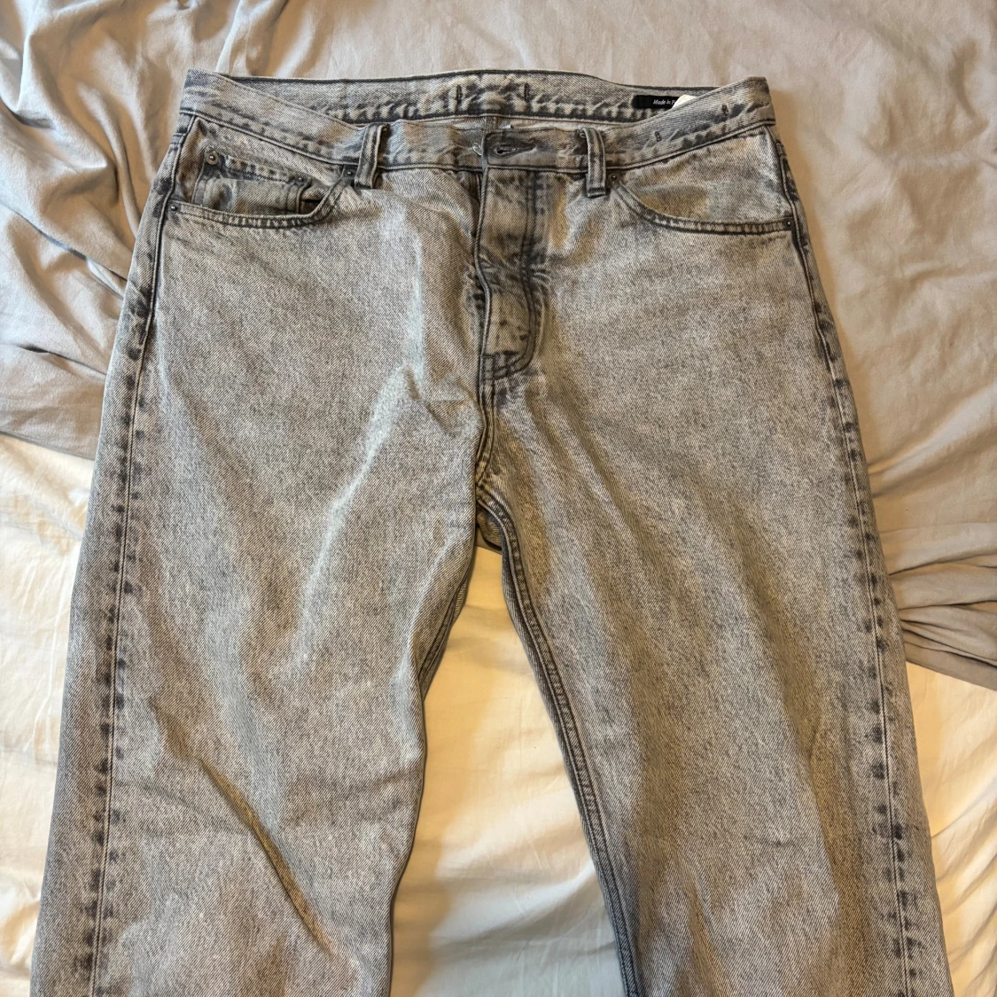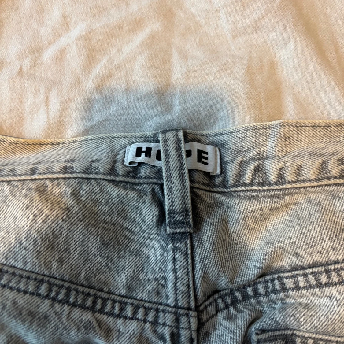 Säljer ett par grå tvättade jeans från HOPE med klassisk femficksdesign och bälteshällor. Jeansen har en rak passform och är tillverkade i kraftig denim. Snyggt stentvättad look som ger en cool vibe. Tillverkade i Portugal.