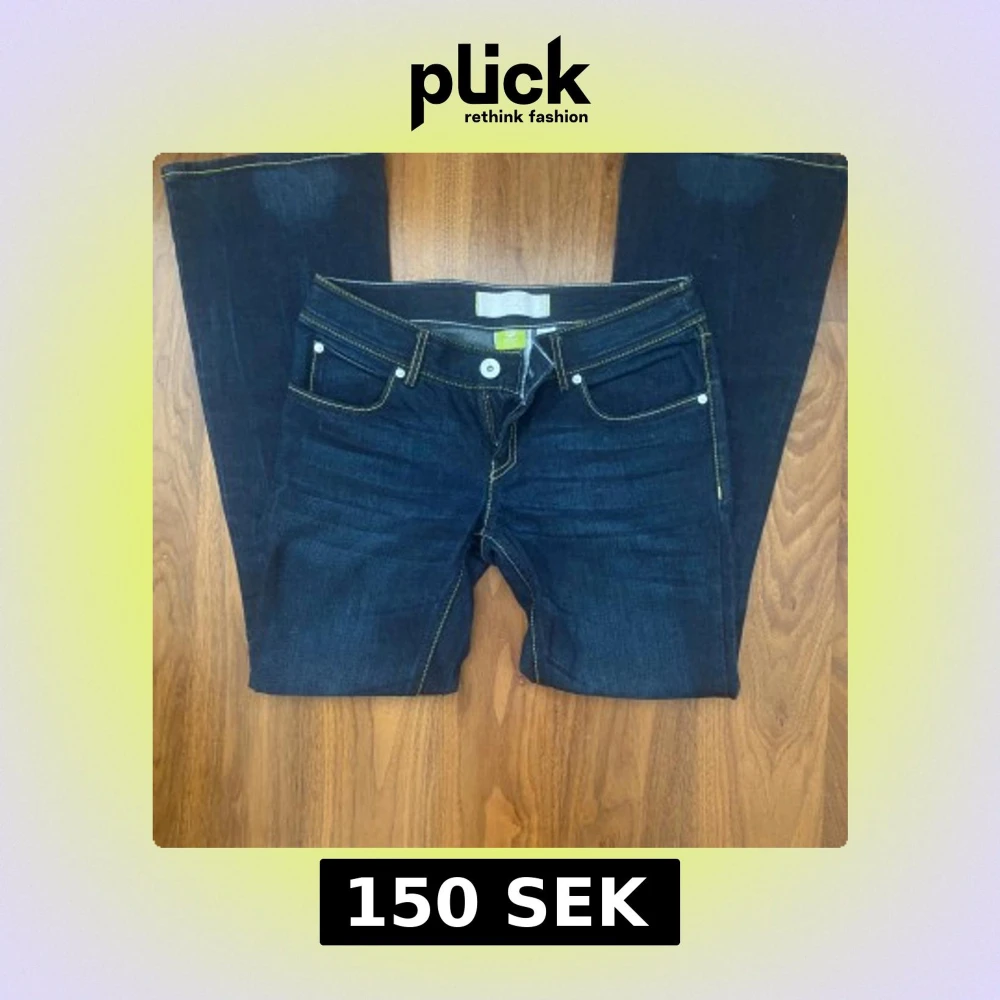 Mörkblå lågmidjade utsvängda jeans, innerbenslängd 77 cm