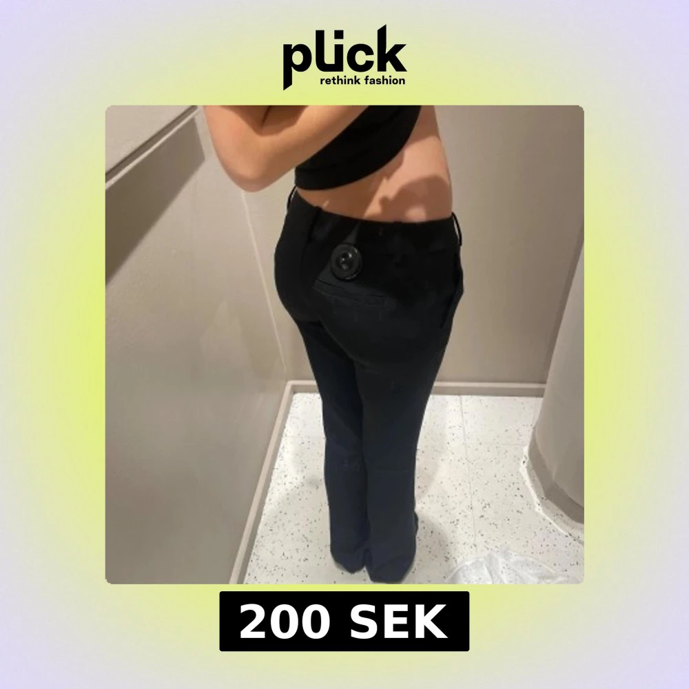 Snygga svarta kostymbyxor från BikBok i storlek 34. Byxorna har raka ben, hög midja och klassiska fickor bak och fram. Stängs med dragkedja och knapp. Perfekta för en clean och stilren look.