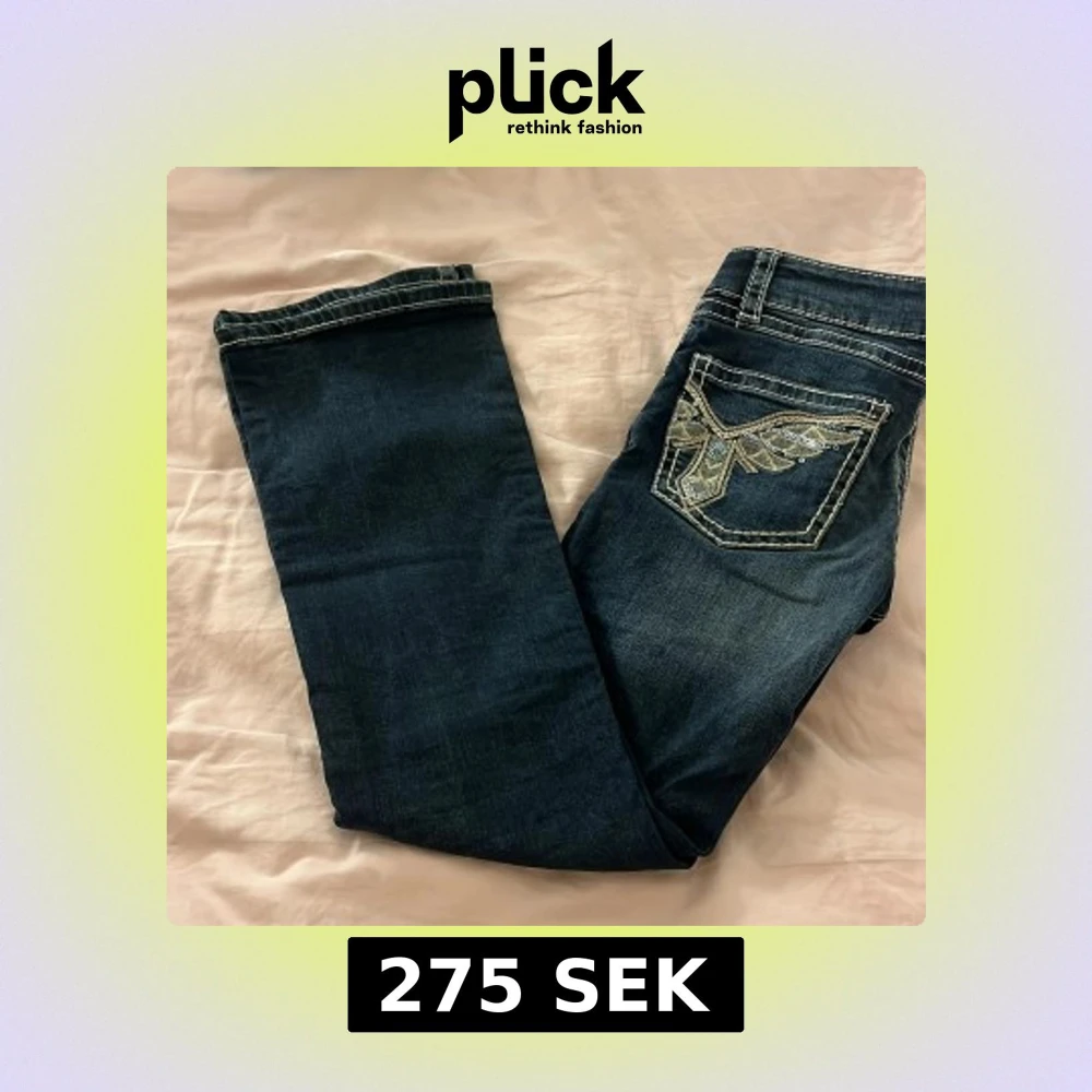 Jätte fina bootcut jeans ifrån ginatricot med snygga detaljer på fickorna, de ör i storlek 152 och säljer för de inte kommer till användning💕💕