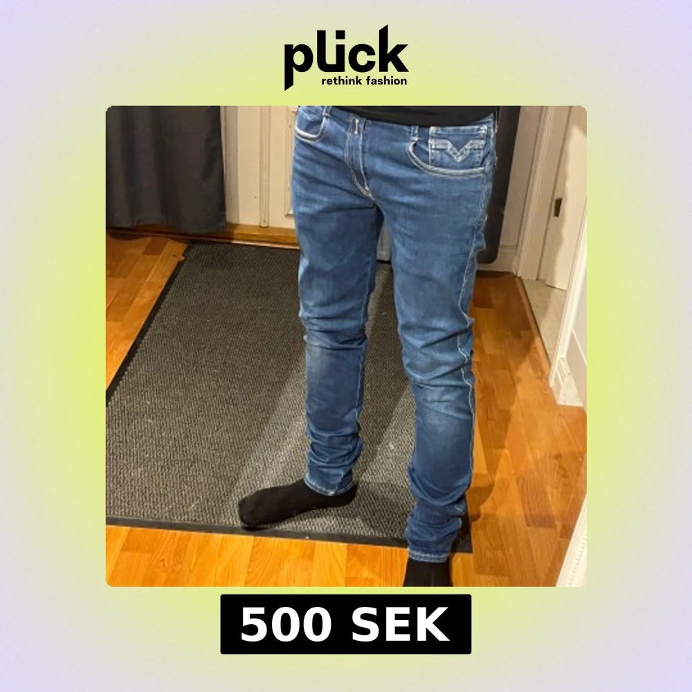 Säljer ett par blå Replay Anbass jeans med normal passform och slim fit. Klassisk femficksmodell. Använda få gånger. Storlek 28/32.perfekt året runt.