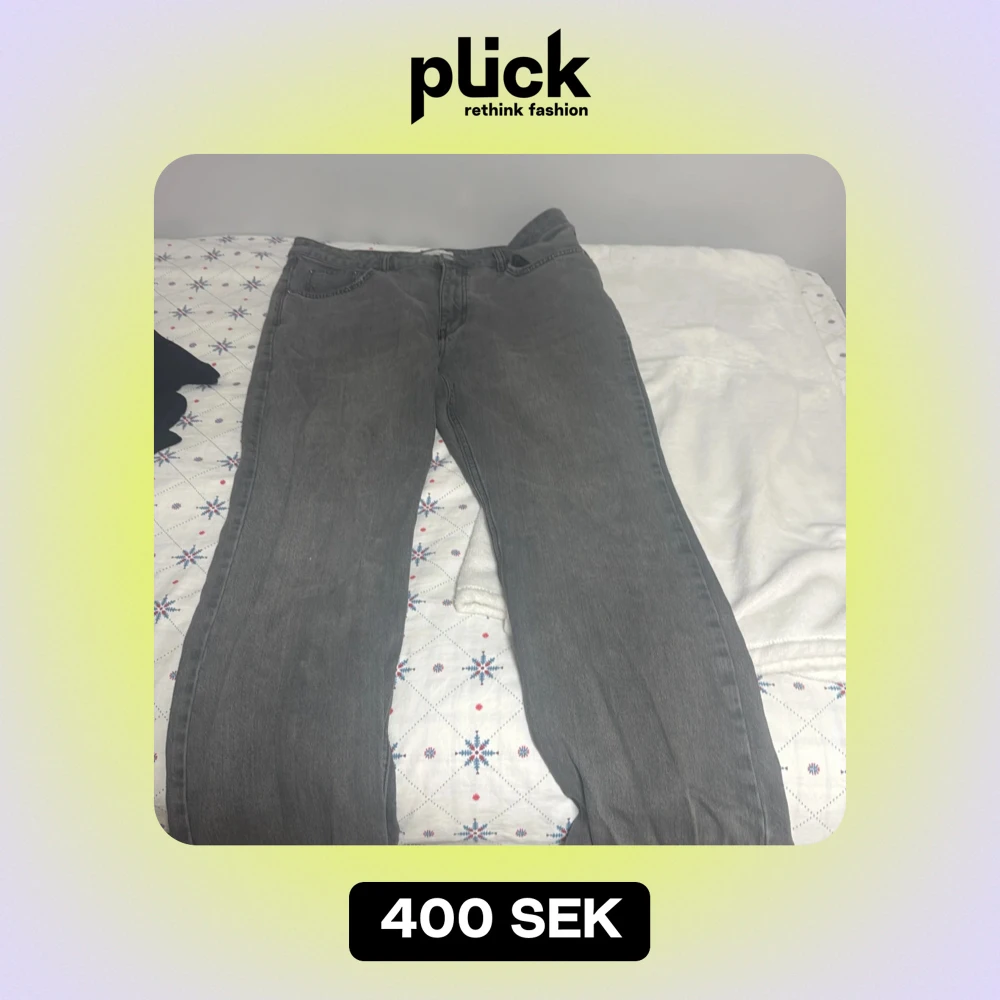 Säljer ett par grå jeans från Perfect Jeans i bra skick. De har en klassisk femficksdesign och är perfekta för vardagsbruk. Jeansen har en normal passform och är tillverkade i ett slitstarkt material. Perfekta för både höst och vår!har köpt den från GinaTricot köpte den för 500kr och säljer den för 400kr