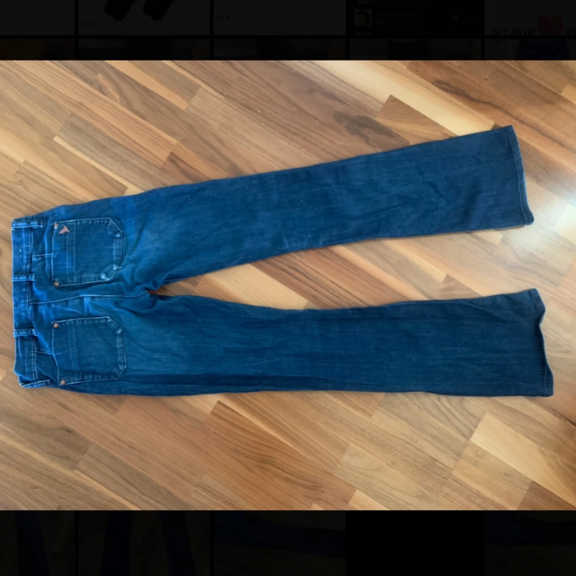 Superfina jeans jag älskar men som tyvärr blivit för små för mig. Innerbenslängd: 79 cm Längd: 100cm Midjemått: 32x2 (men de passade mig även fast jag brukar ha 34🥰)