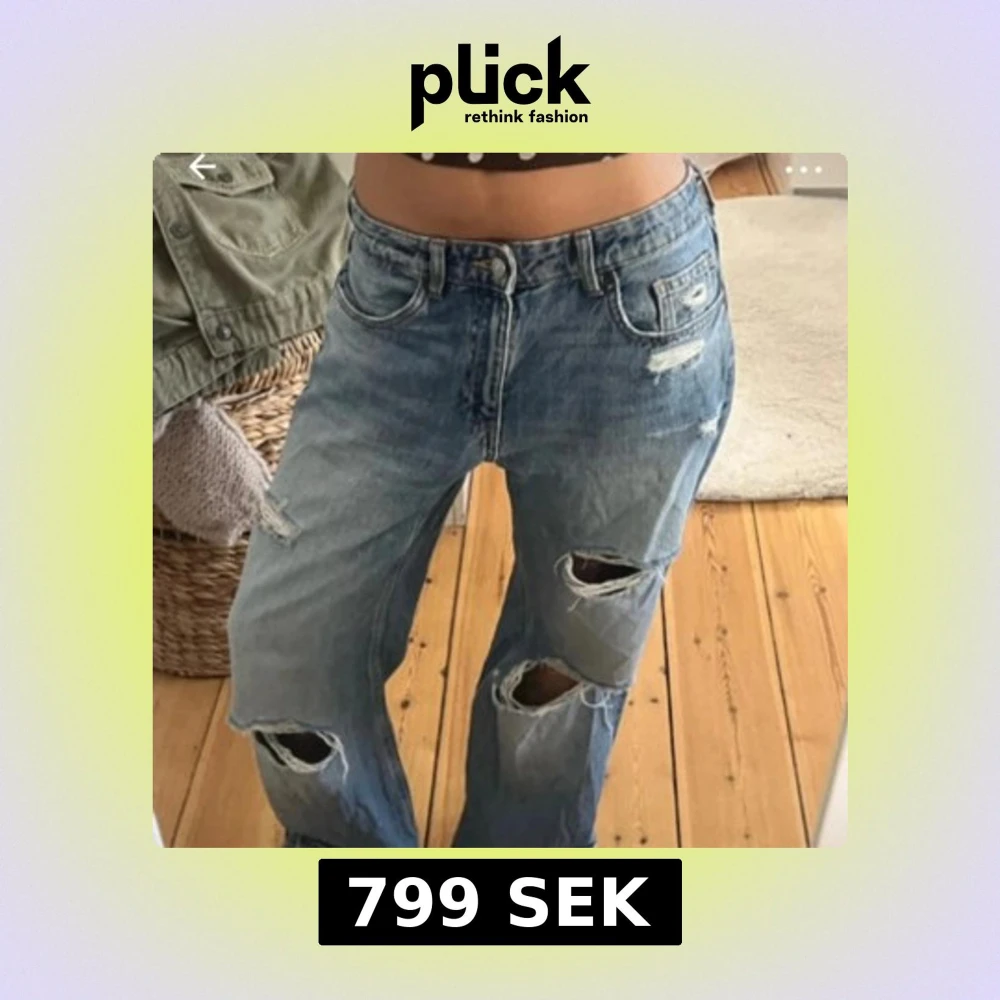 Säljer ett par ljusblå bootcut jeans med slitna detaljer och stora hål vid knäna. Jeansen har klassisk femficksmodell, hög midja och är tillverkade i jeansmaterial. Perfekta för en avslappnad och trendig look. Pris kan diskuteras 💓