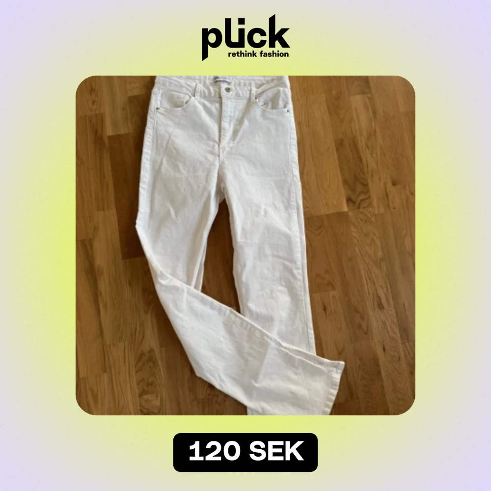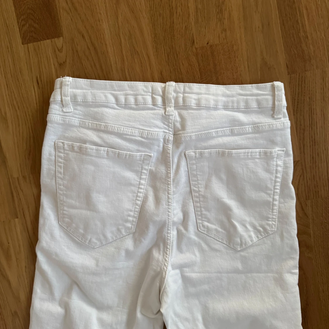 Säljer ett par snygga vita jeans från Zara i storlek 42. Jeansen har en tightare modell med slits längst ner. Använda fåtal gånger