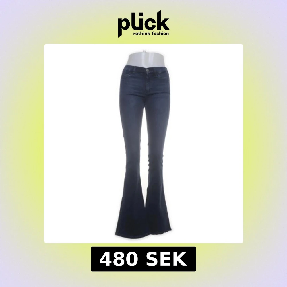 Snygga mörkblå jeans från M.i.h Jeans, modell Marrakesh. Mid waist, och har jätte snygg bootcut nertill. Tillverkade i stretchigt denim med bomull, polyester och elastan för en bekväm känsla. Klassisk femficksmodell och dragkedja. Det står ingen storlek i men skulle uppskatta storlek 36. Köpta för 800